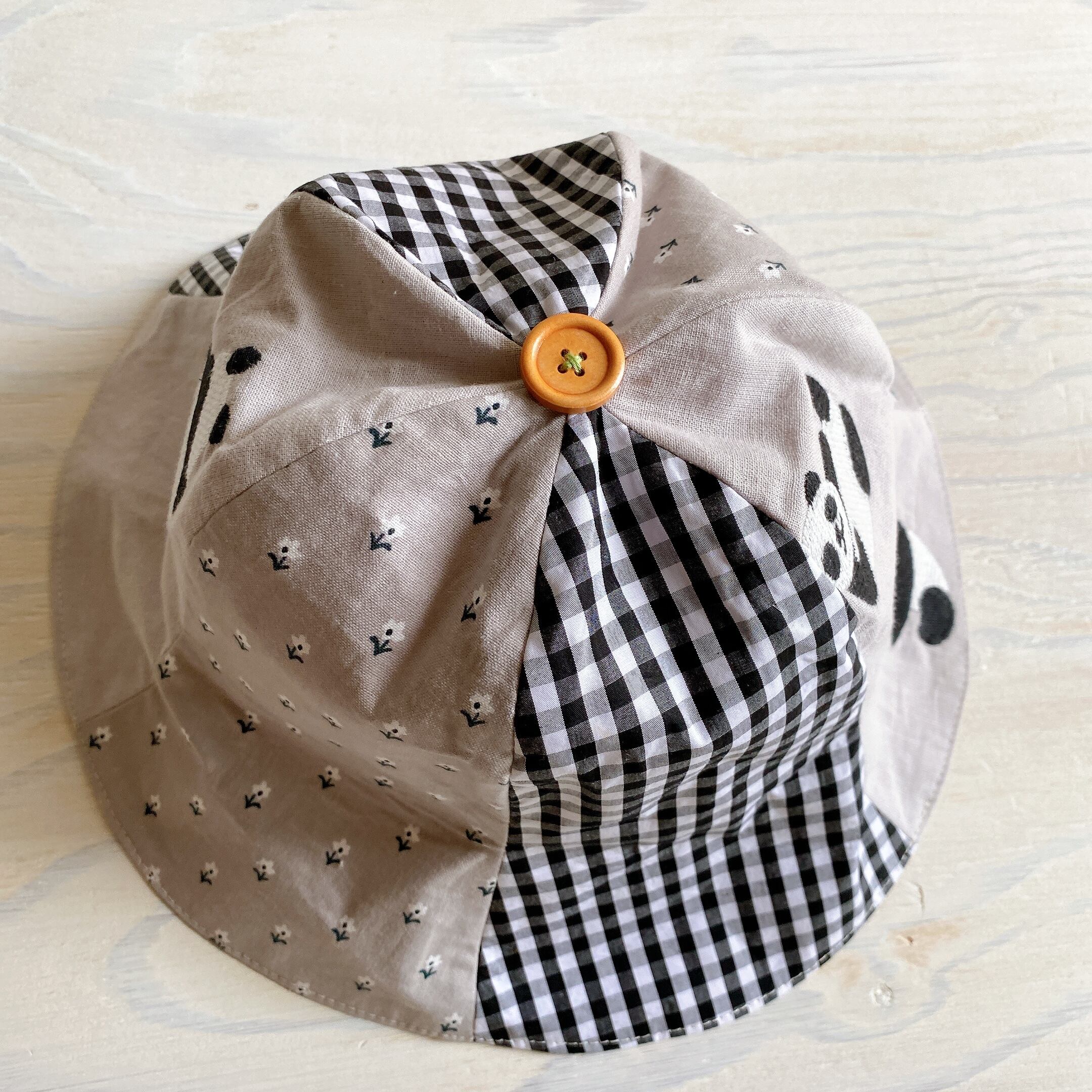 相性の良い3色の生地を組み合わせてチューリップハットにしました。