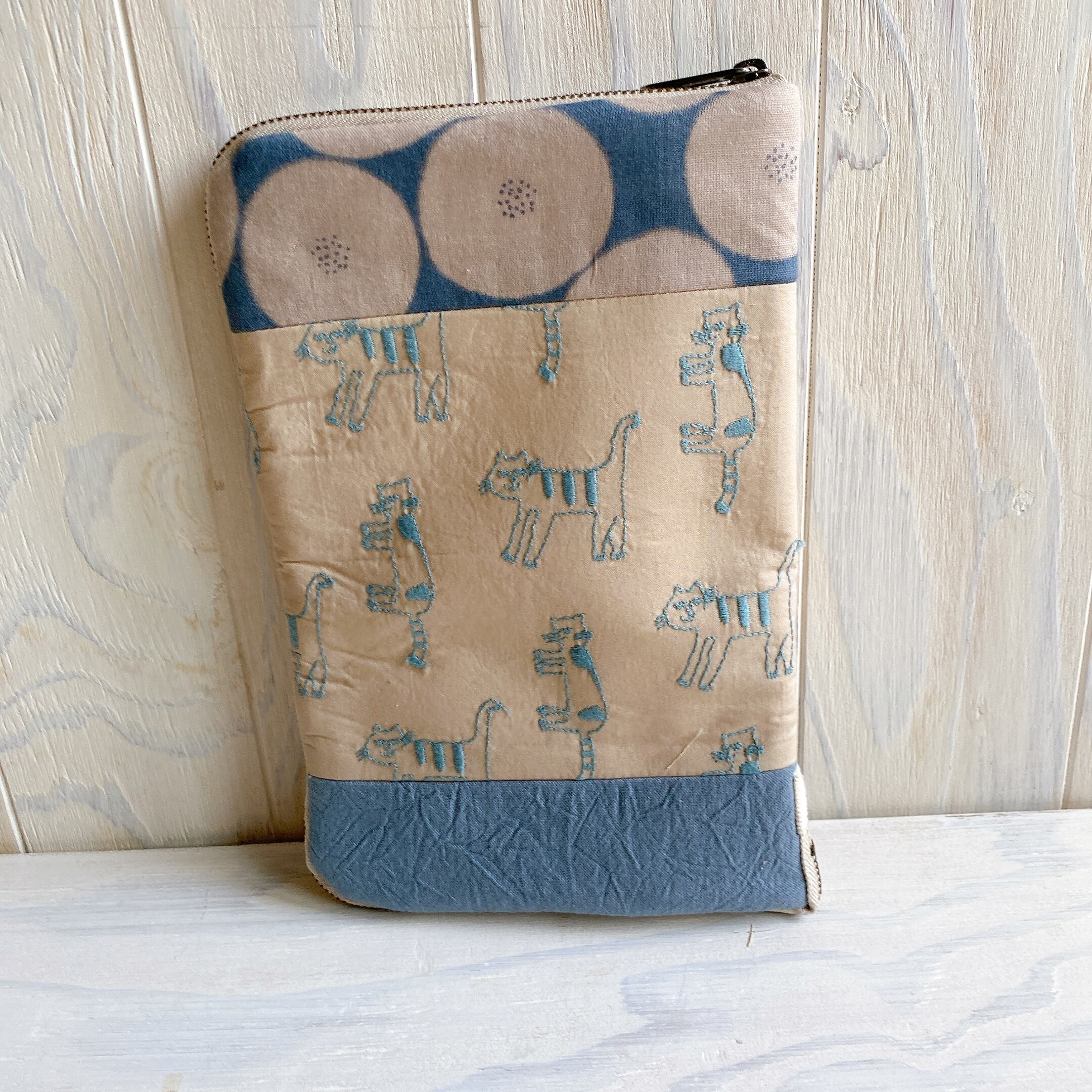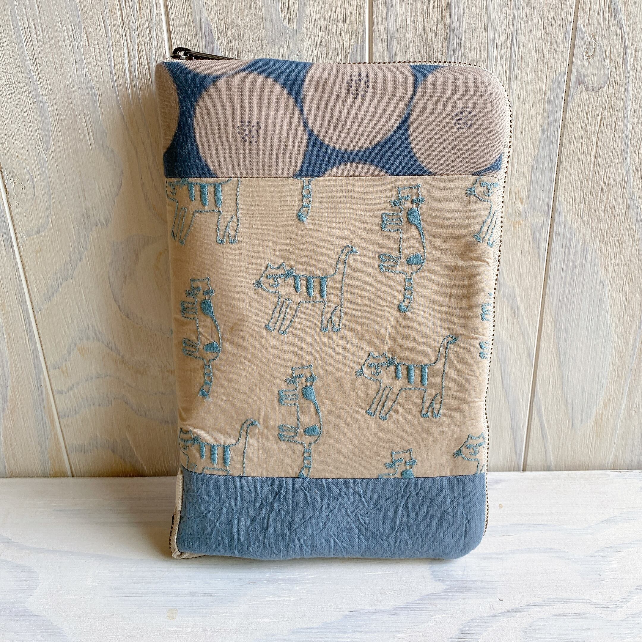 A5サイズのファスナーマルチケース(刺繍ネコ)