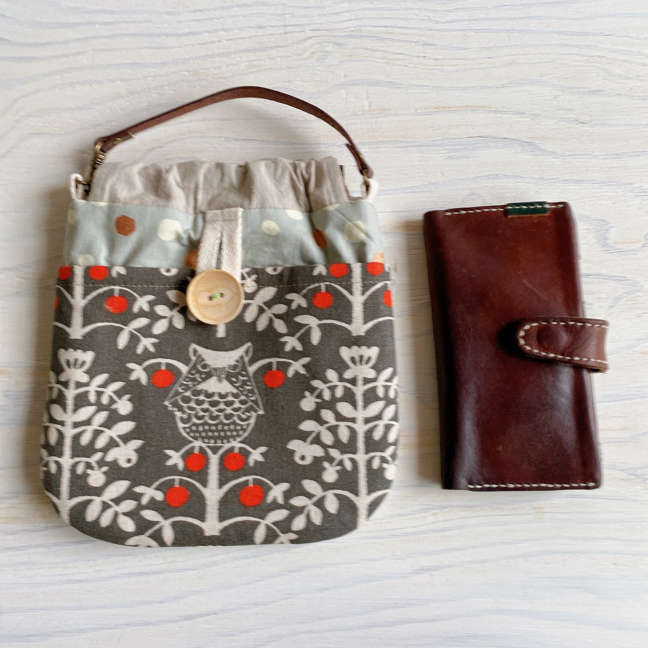 本革ストラップのばね口ミニバック(ふくろう・チャコール)