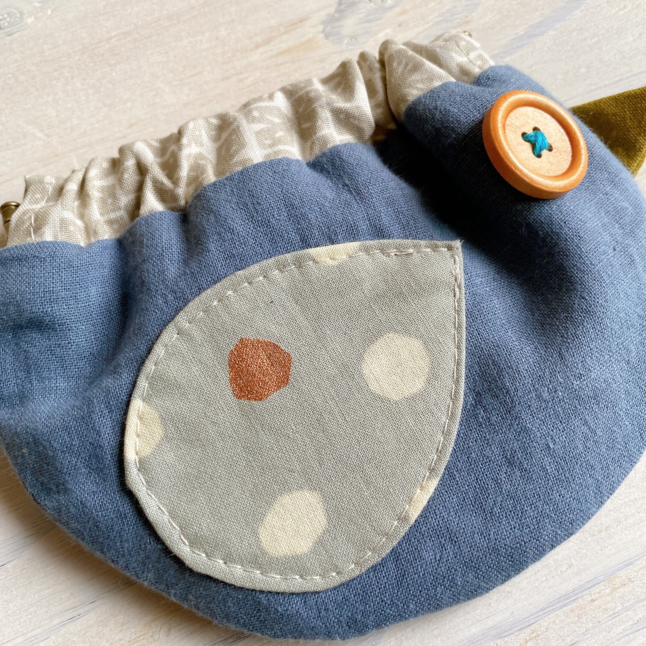 ことりのばねポーチ(ブルーグレー)