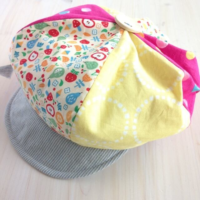 相性の良い3種類の生地を組み合わせて賑やかなキャスケットにしてみました。