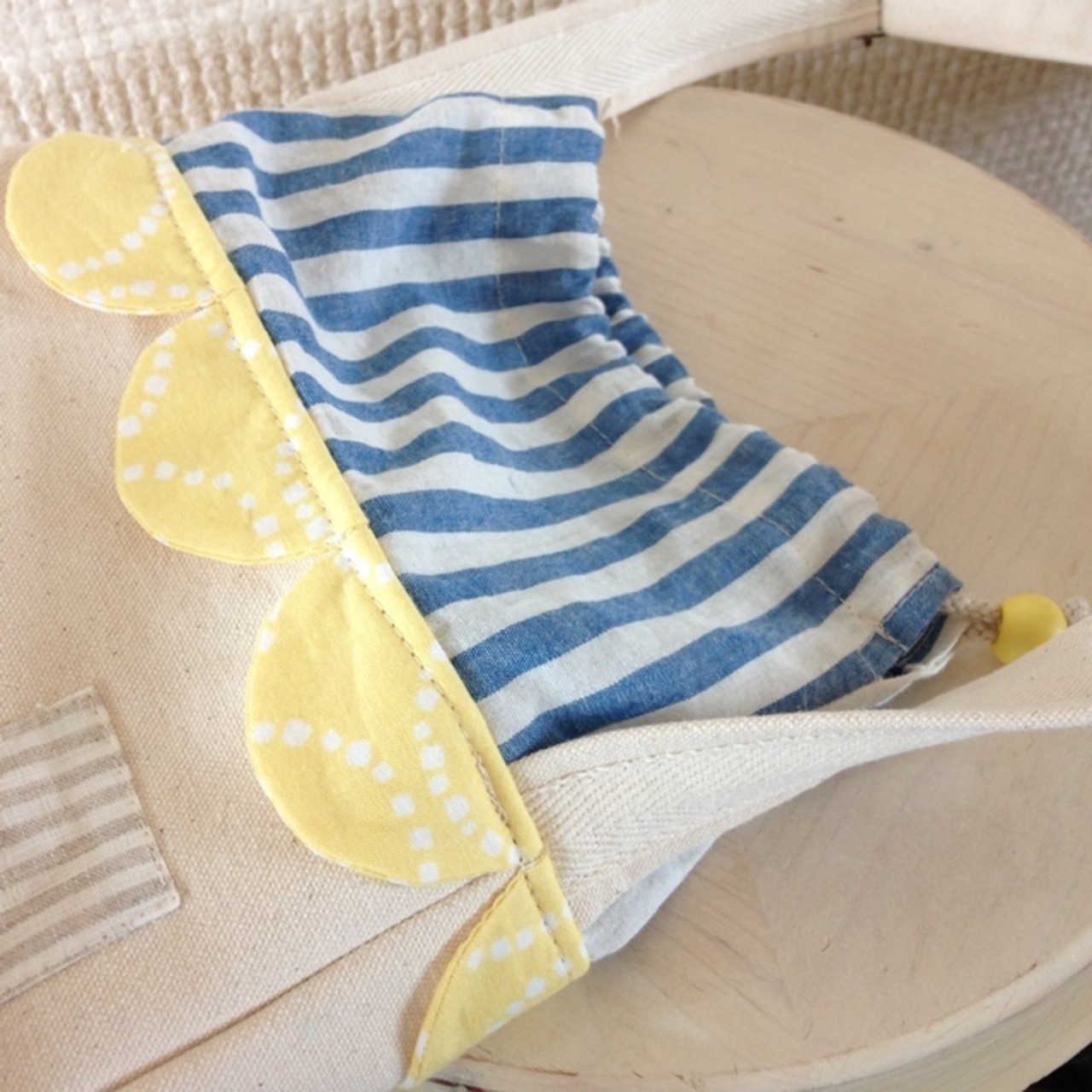 屋根の入り口は巾着で開け閉め。ストッパーできゅっと締めるだけなので楽ちんです。