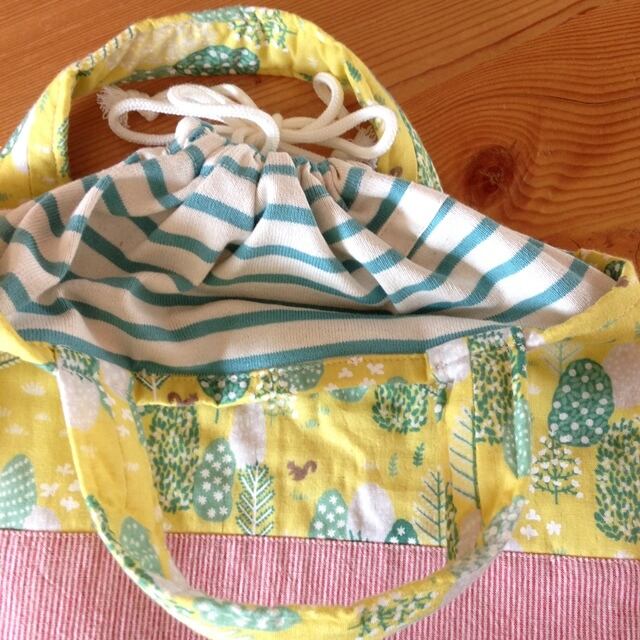 巾着付きのA4トートバック(リスとリボン)