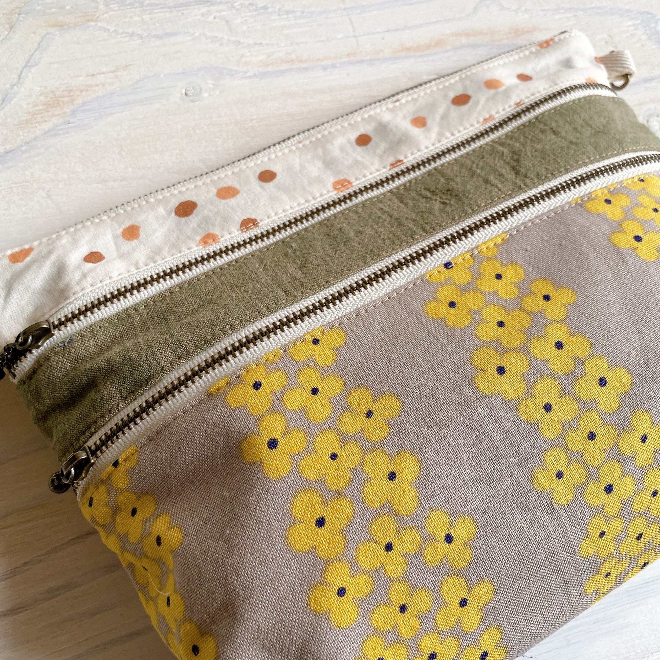 マチ付き3ファスナーポーチ*ポシェットにも♪(おはな)