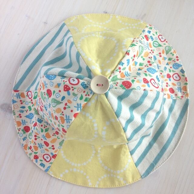 相性の良い3色の生地を組み合わせてチューリップハットにしました。