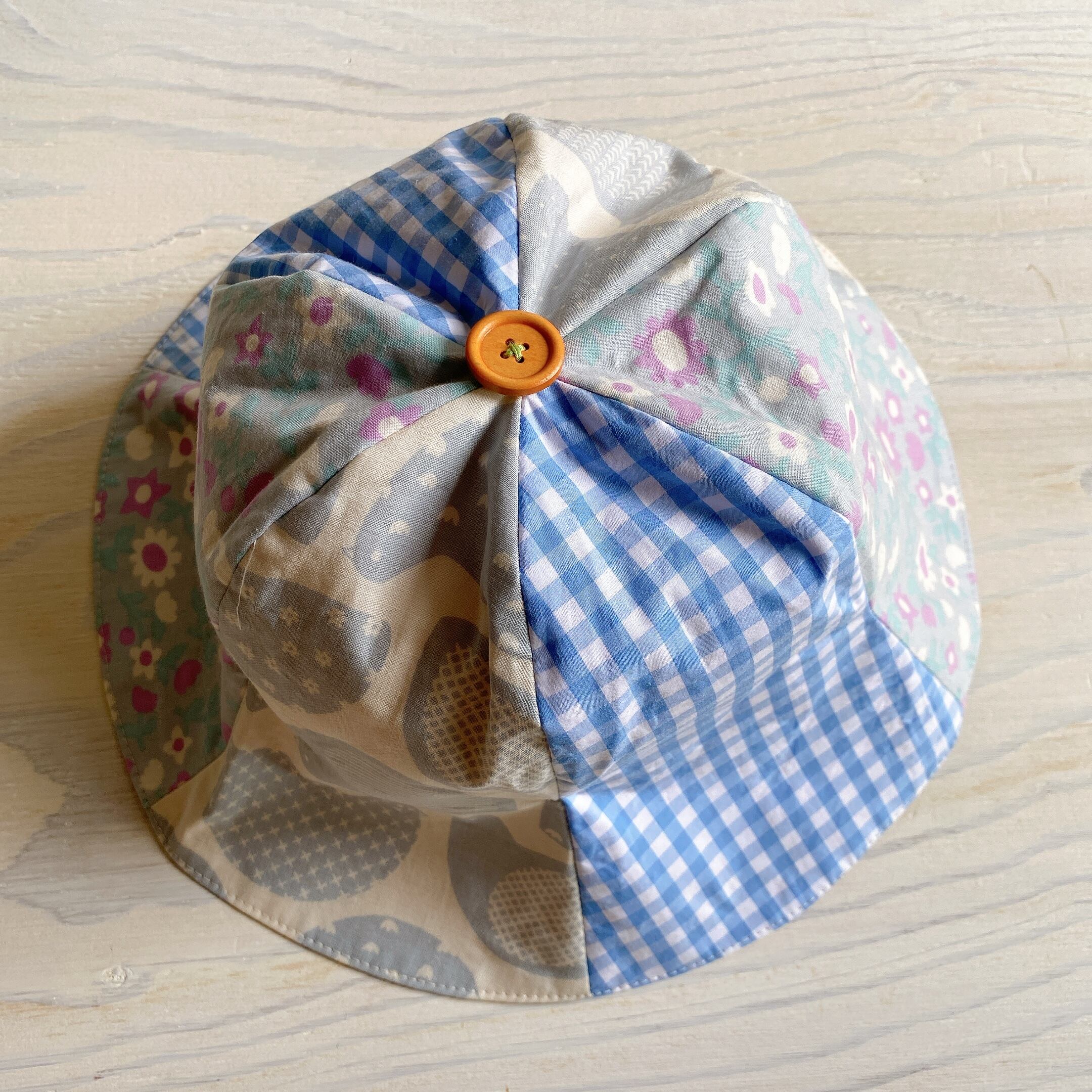相性の良い3色の生地を組み合わせてチューリップハットにしました。