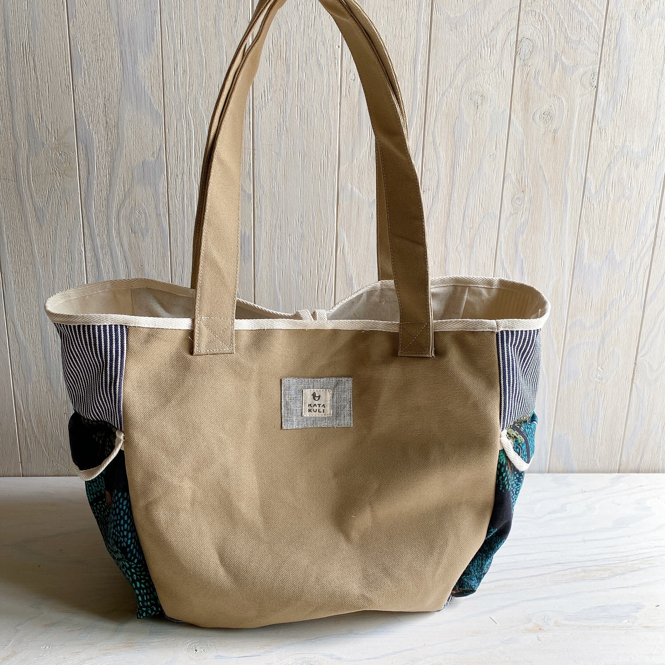裏地付きの仕立てで、裏側にも大きなポケットをつけましたので