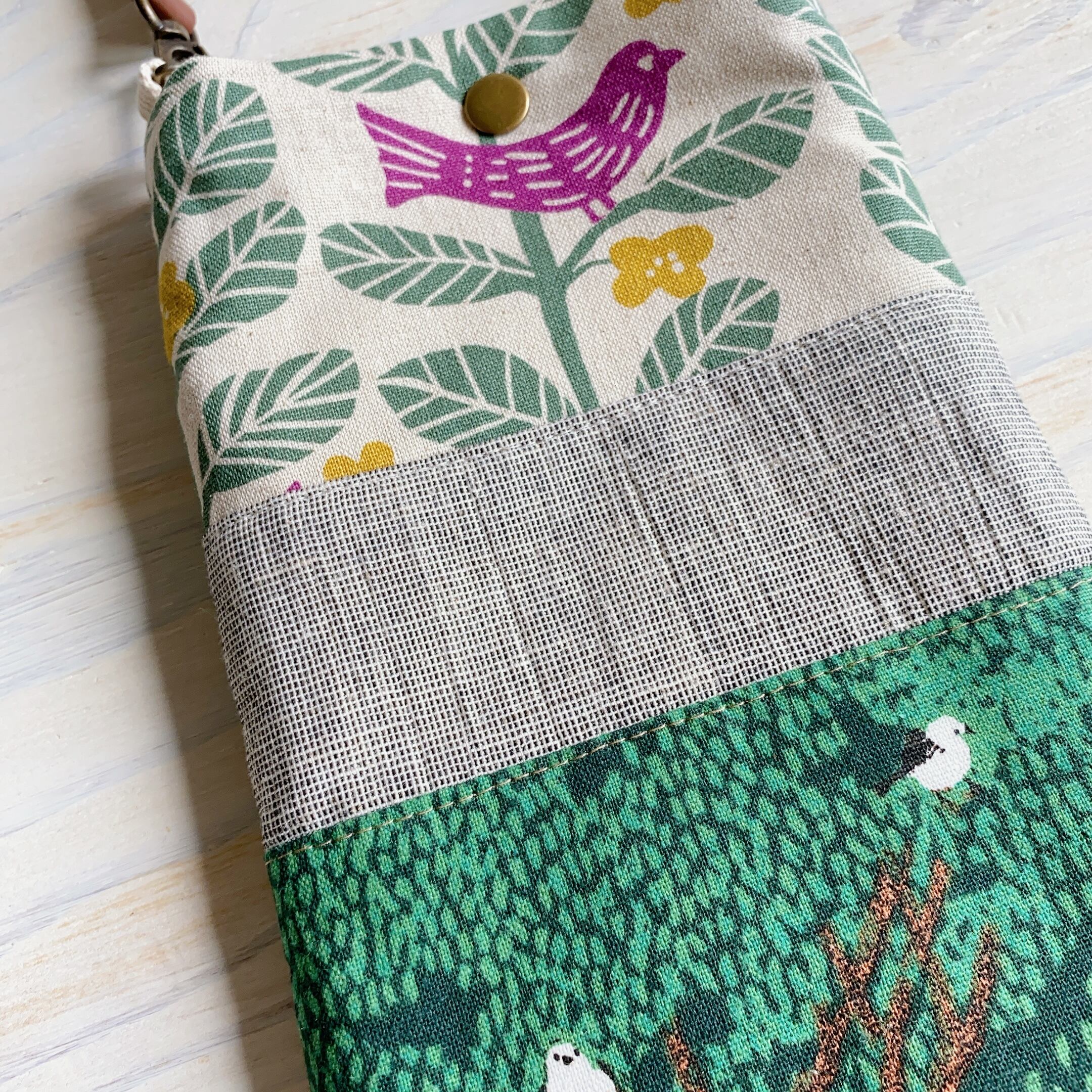 入り口のスナップボタンがスマホがうっかりポーチからこぼれるのを防いでくれます。