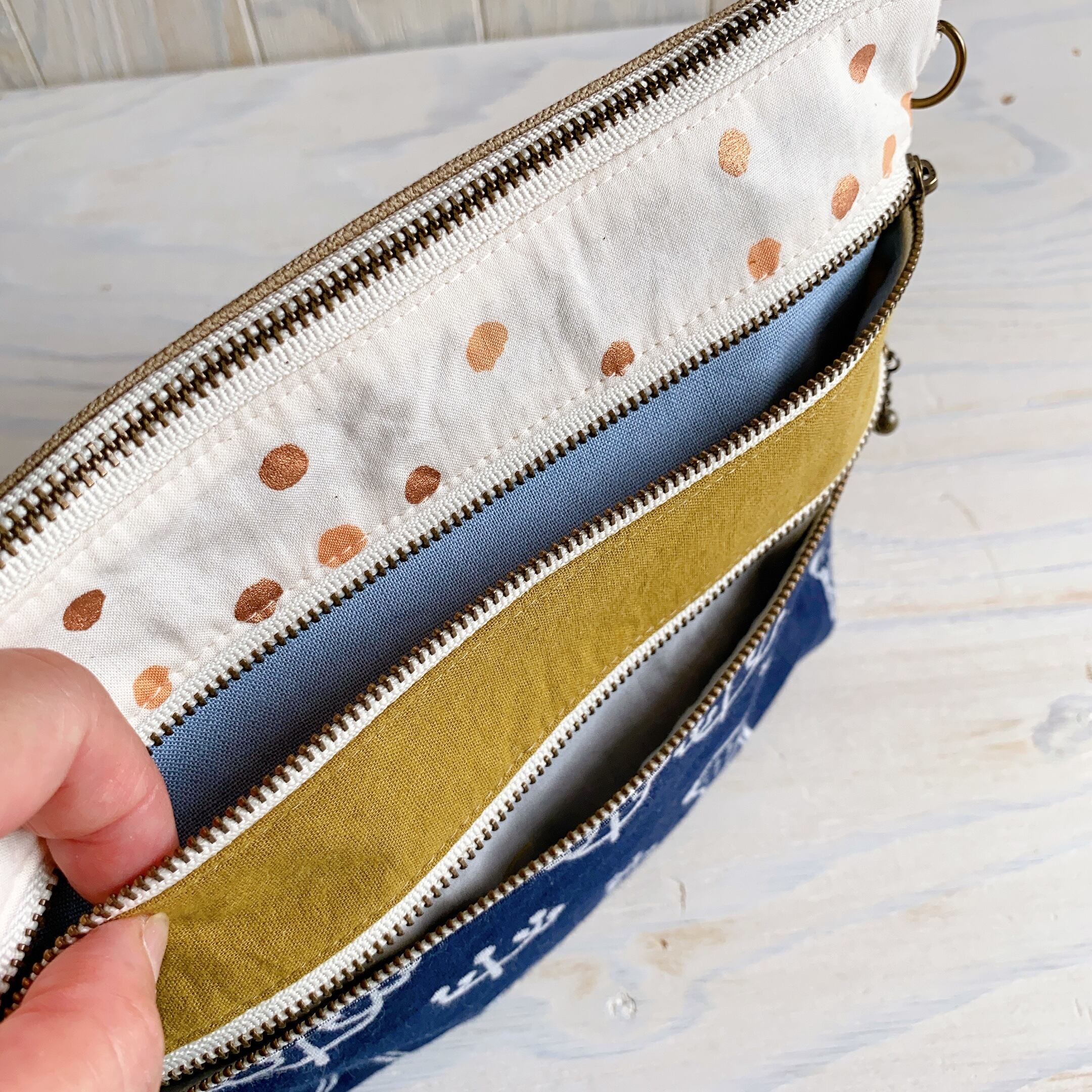 相性の良い生地を組み合わせてポシェットにもなるポーチを作りました。