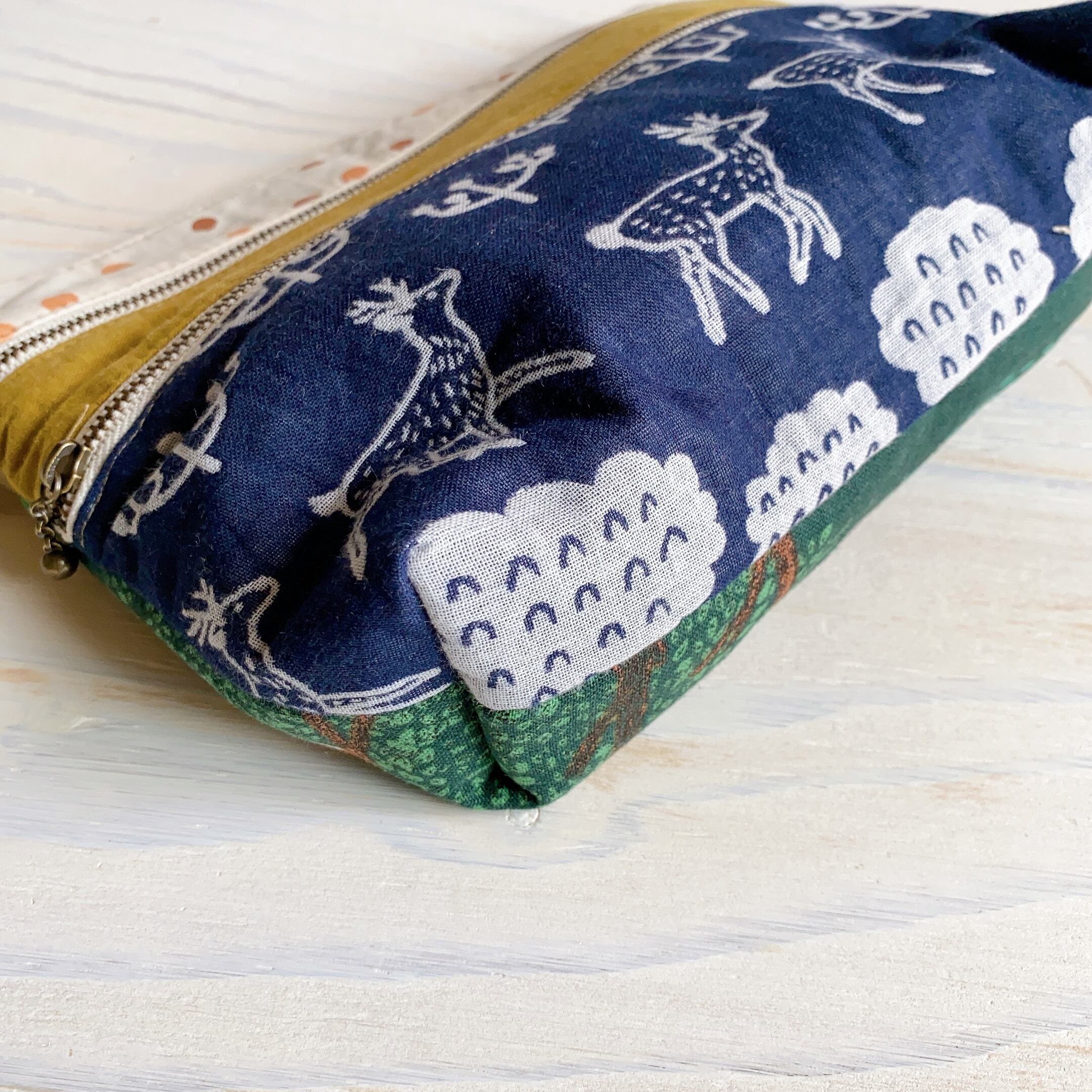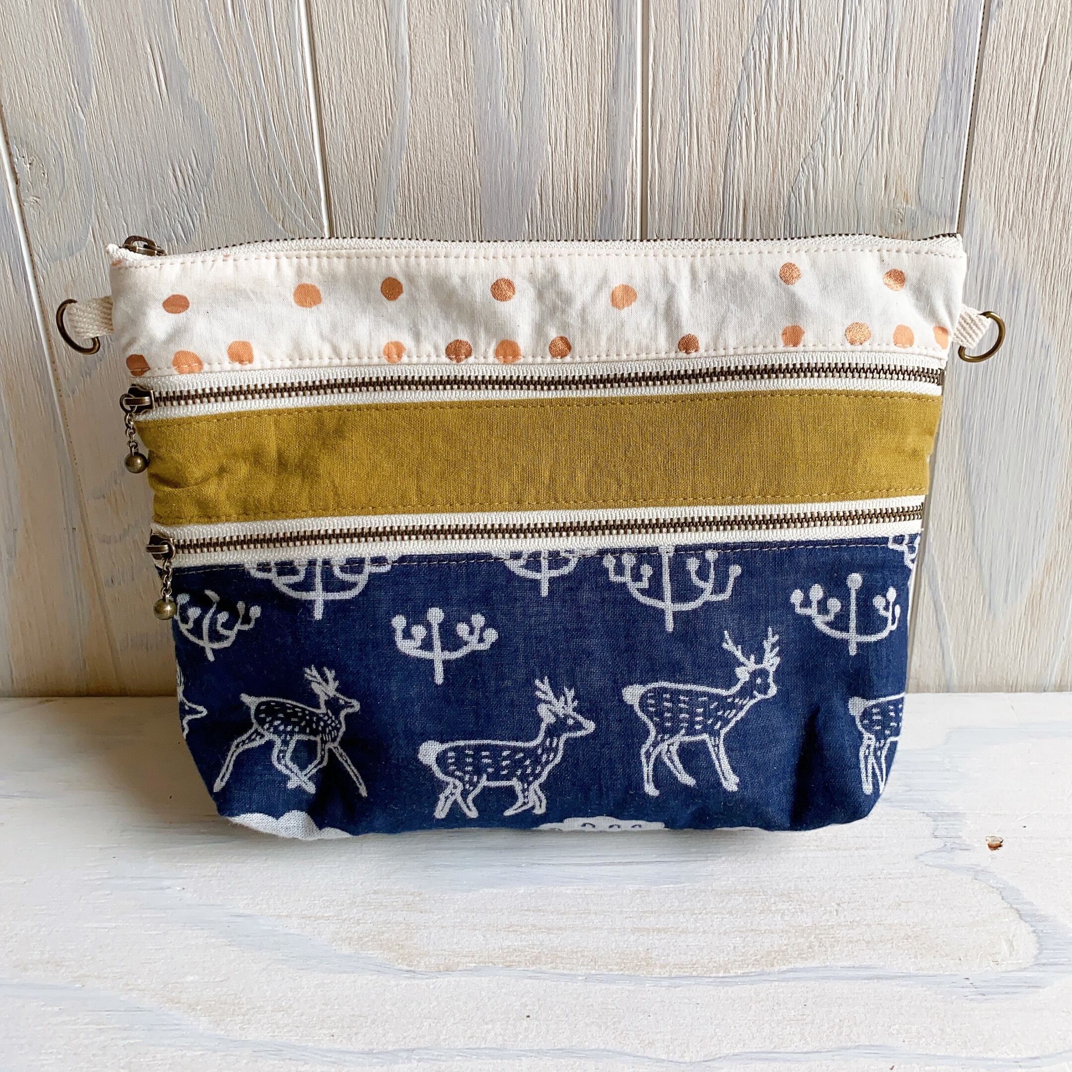 マチ付き3ファスナーポーチ*ポシェットにも♪(シカ×森)