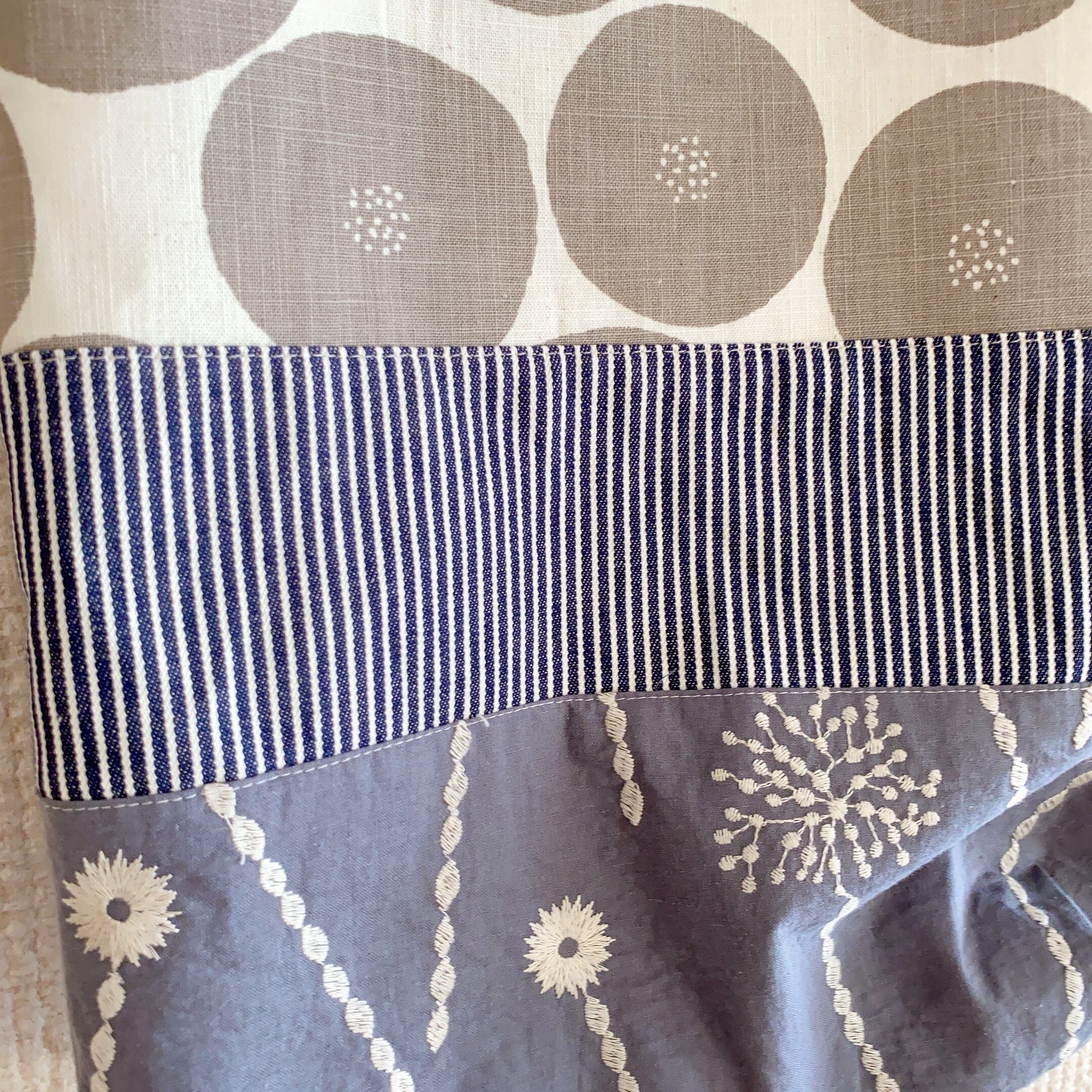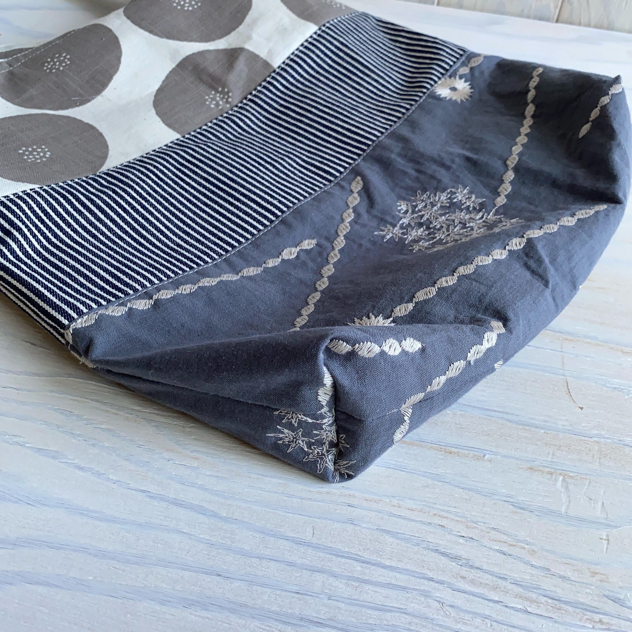 3種類の生地をつなぎ合わせたオンリーワンのバックです。