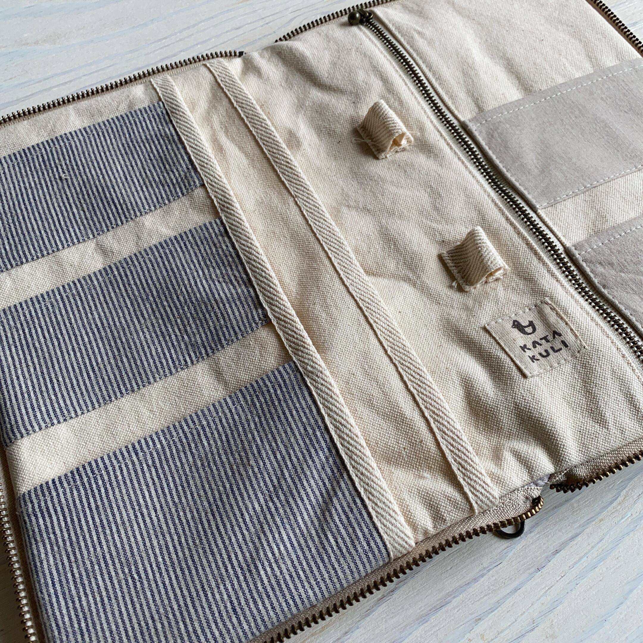 ケースがパカっと全開になるように、ファスナー止まりの部分に工夫をしています。