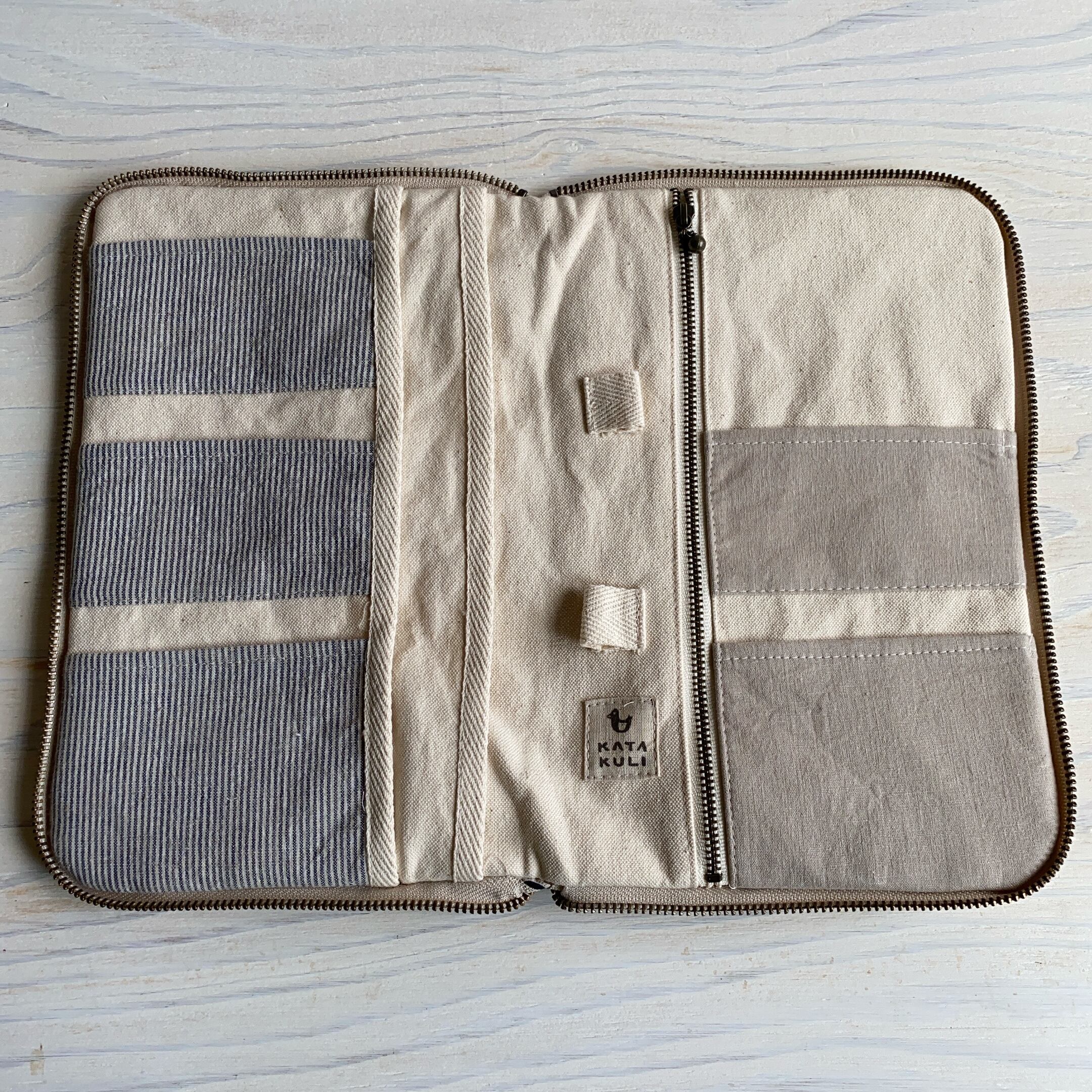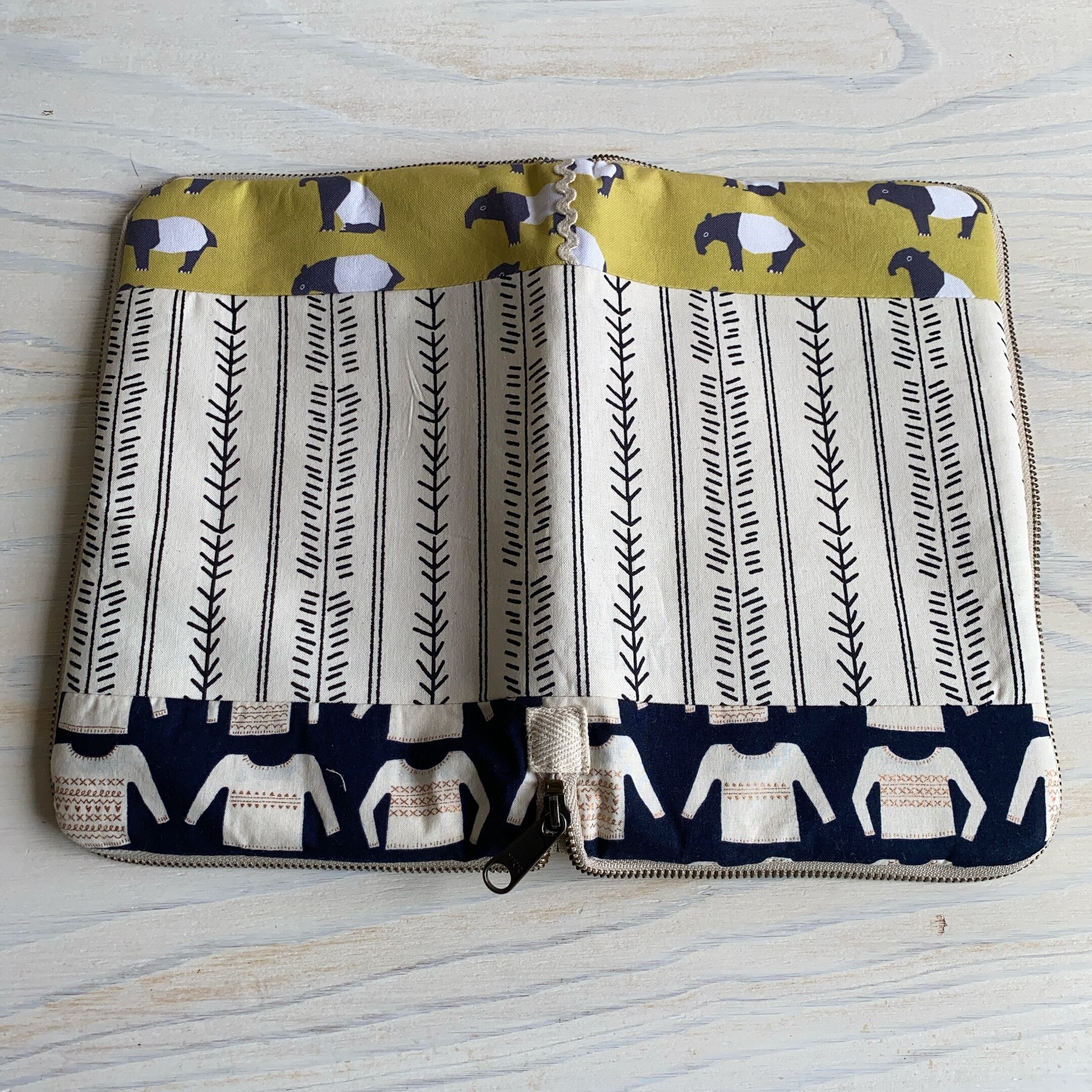 ケースがパカっと全開になるように、ファスナー止まりの部分に工夫をしています。