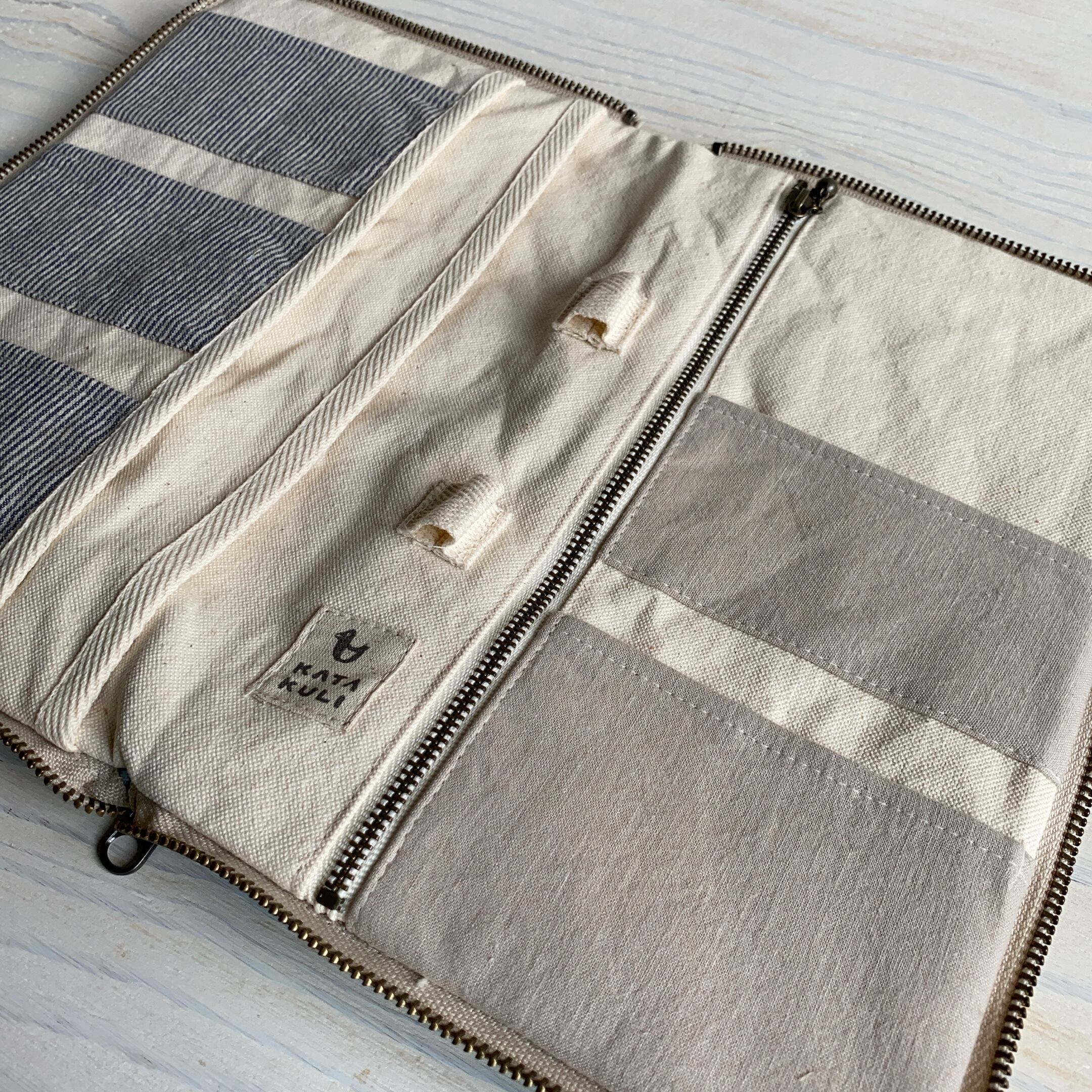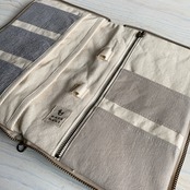 ケースがパカっと全開になるように、ファスナー止まりの部分に工夫をしています。