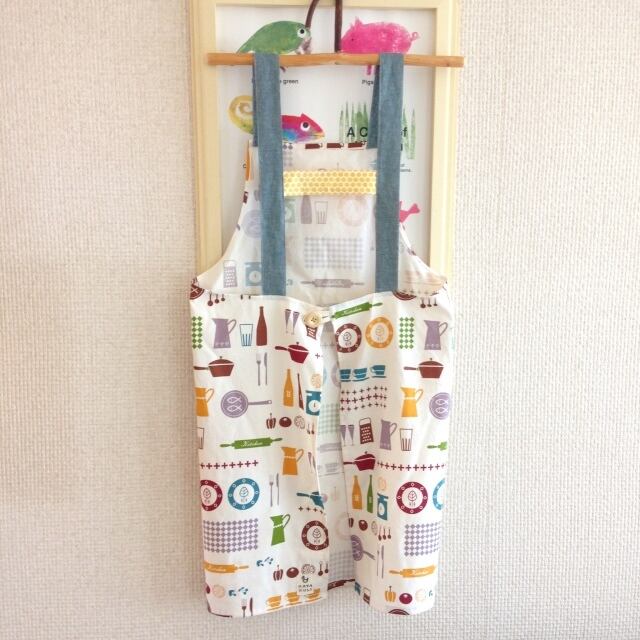 肩ひも後ろはHの形。おとなエプロン(キッチン)