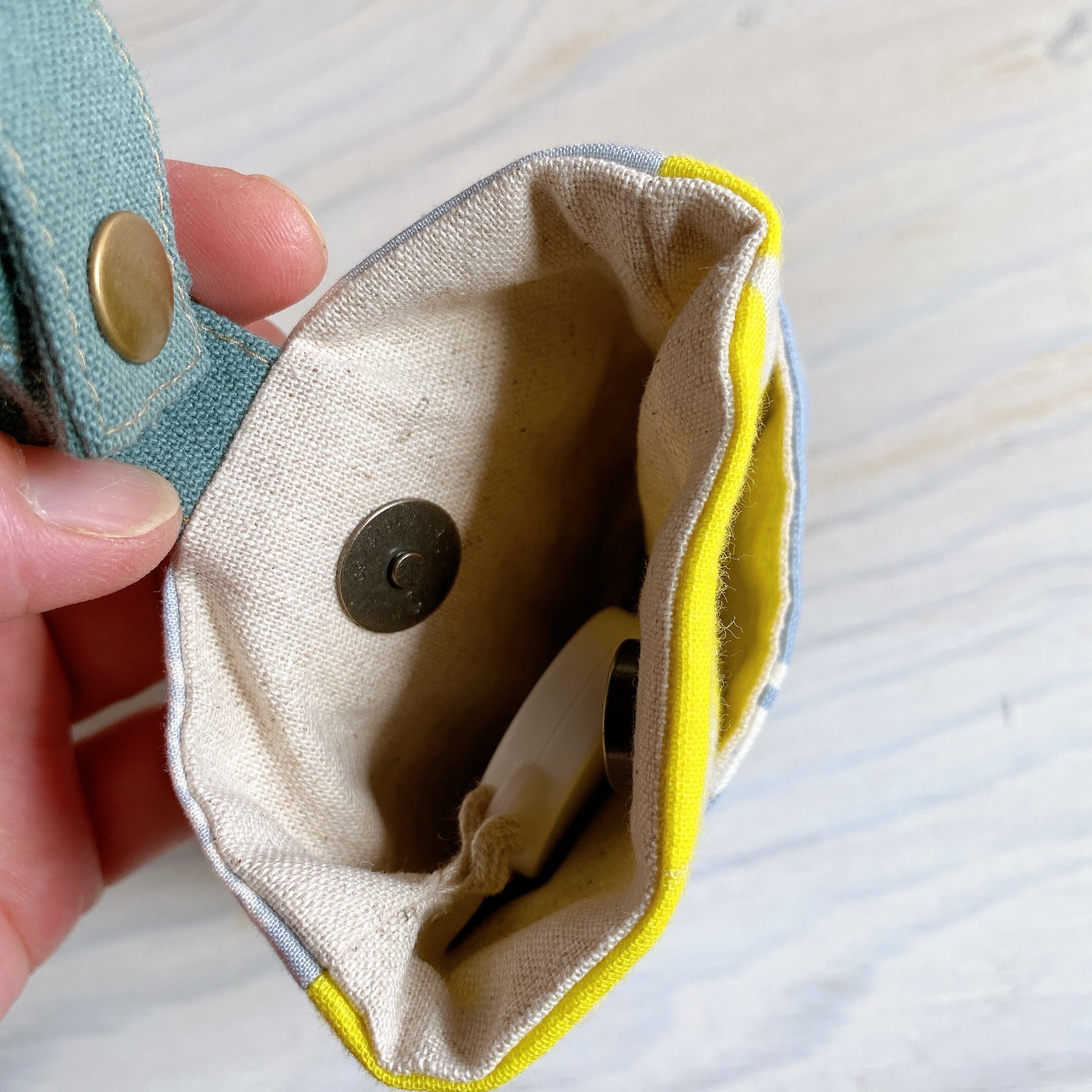 ポケットの入り口にはマグネットボタンをつけましたので
