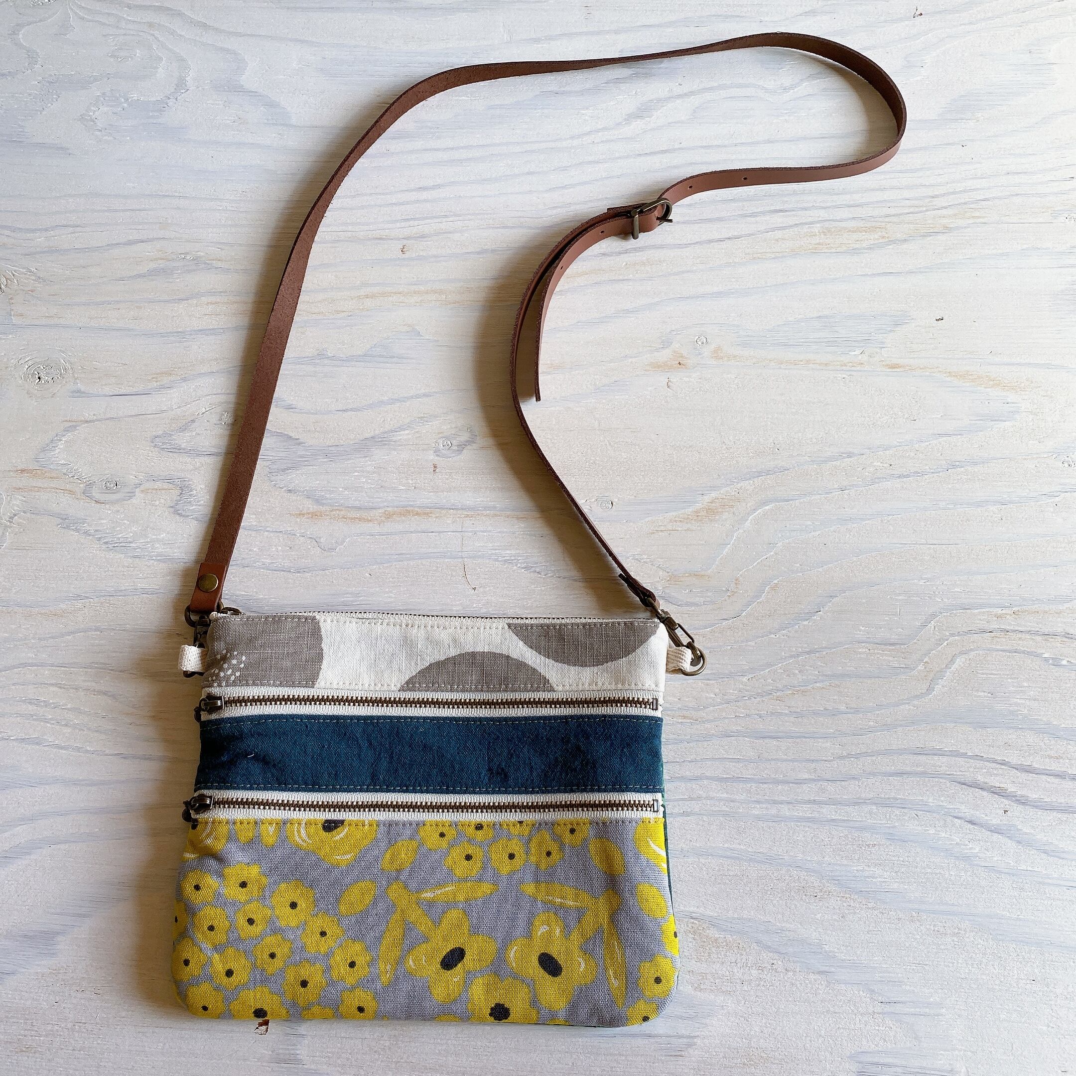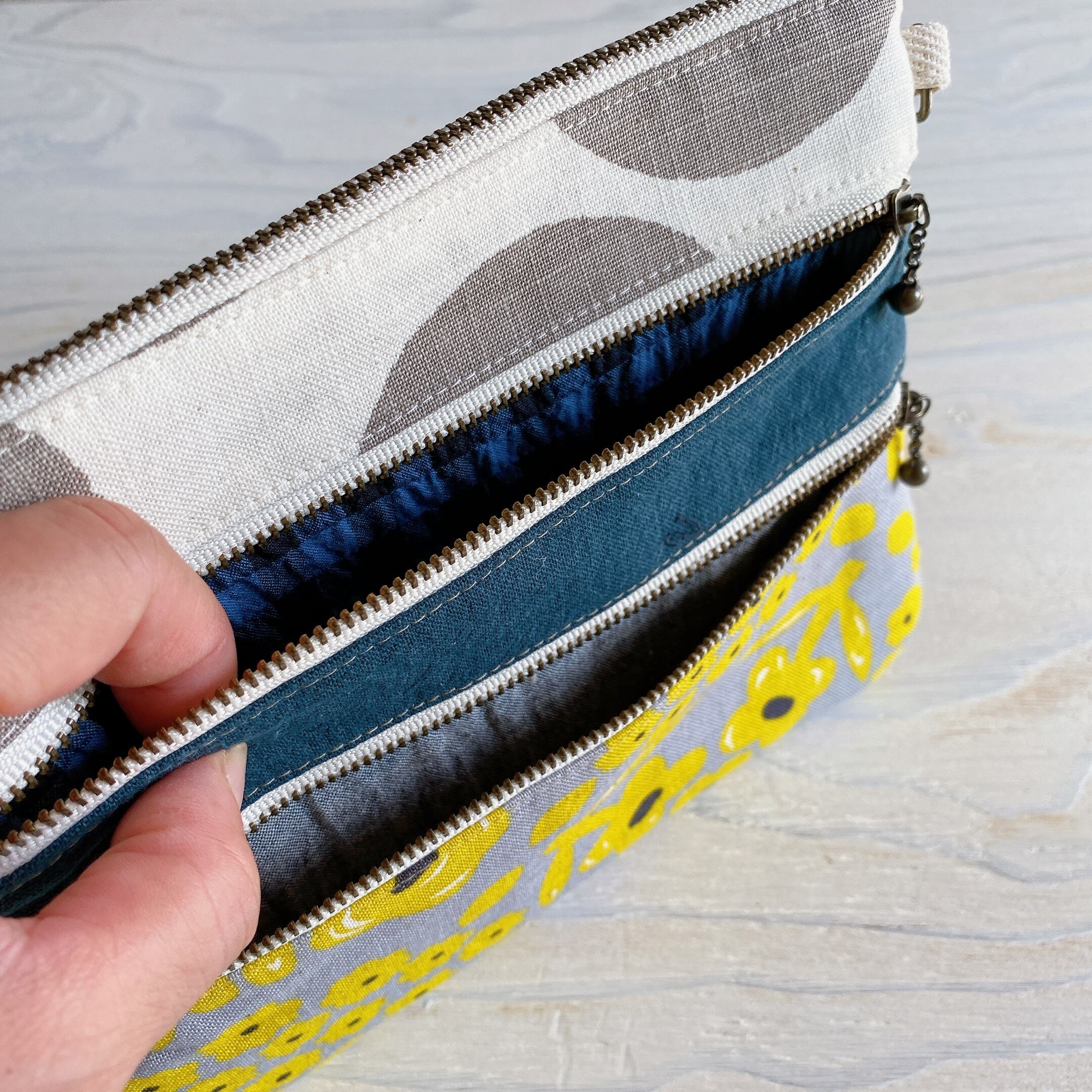 3ファスナーフラットポーチ・サコッシュにもなります(キイロお花)