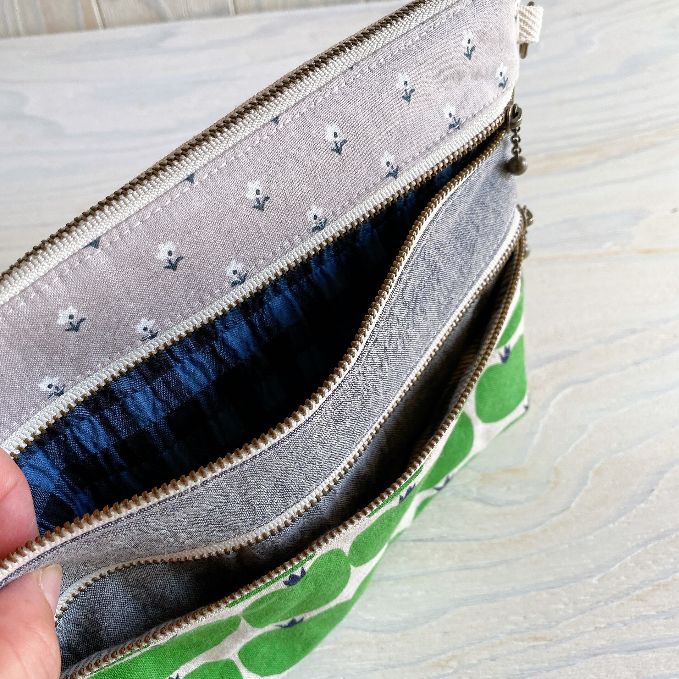 マチ付き3ファスナーポーチ・ポシェットにもなります(ミドリトマト)