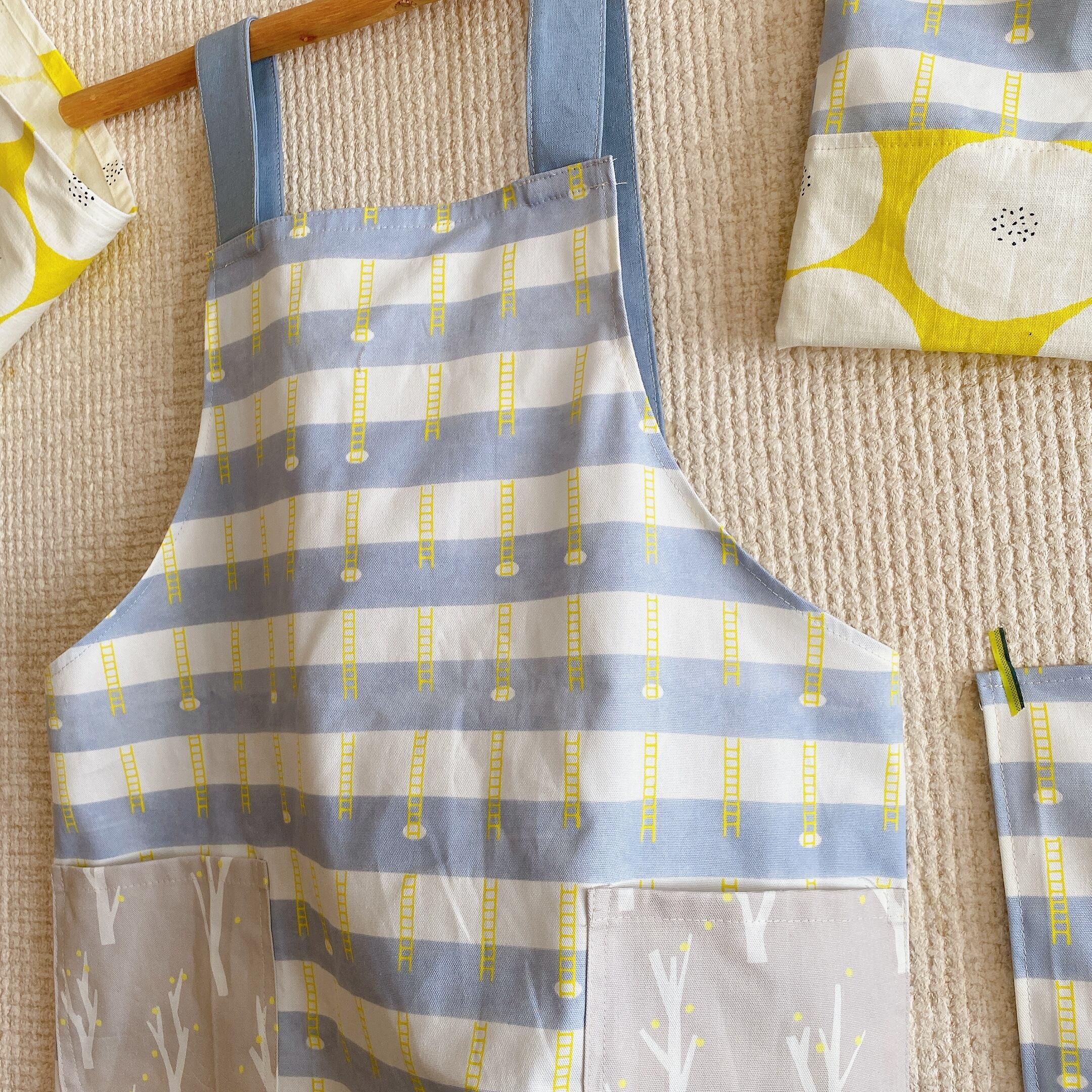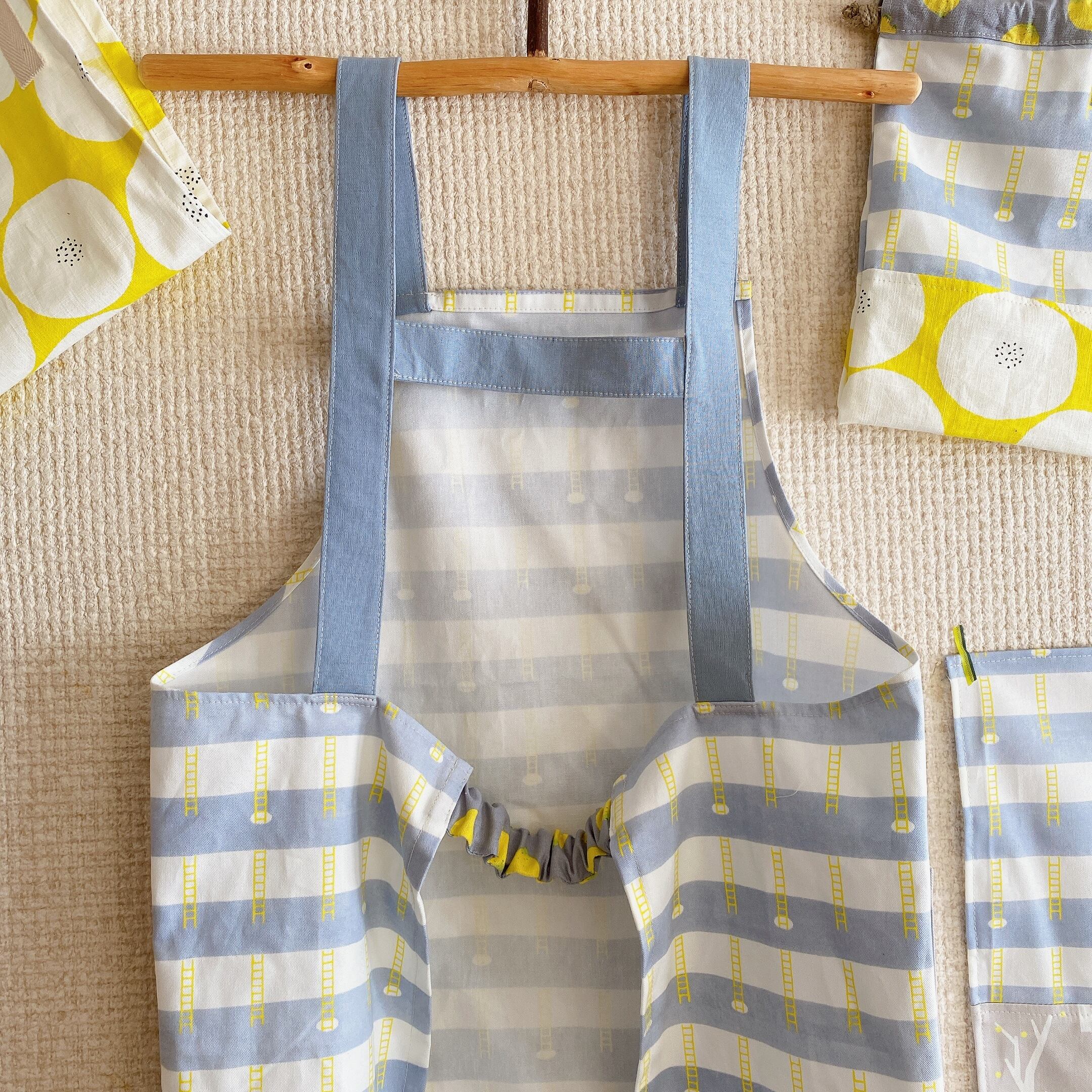 【オーダーのお品】高学年キッズのエプロン4点セット(サイズ150)はしごボーダー