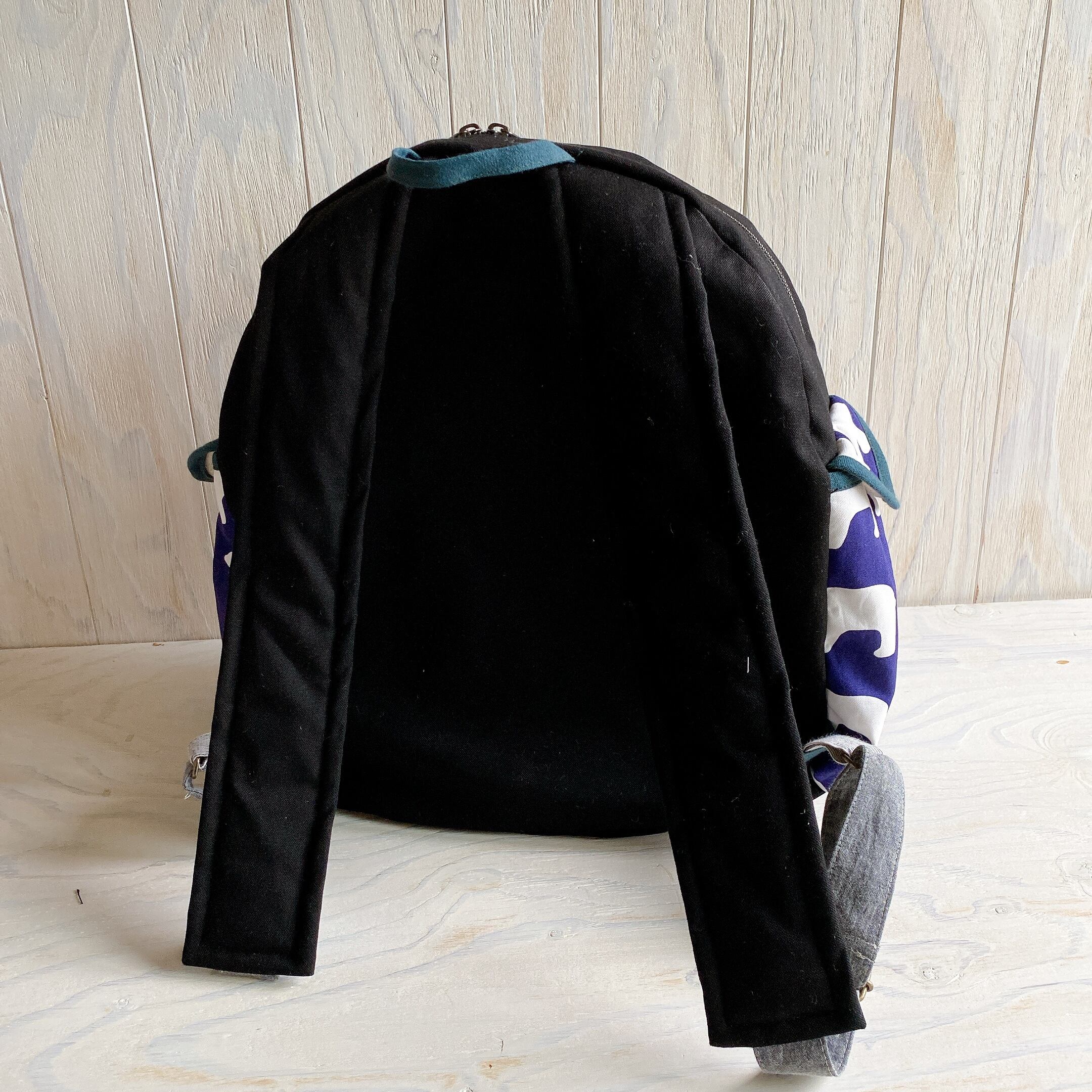 本体はハンプ、柄の生地は芯を張った綿麻の生地を使い、