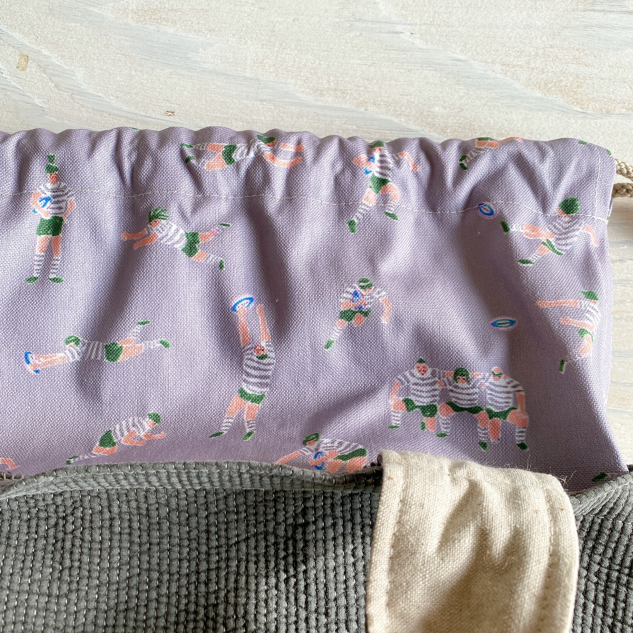 ヌビの巾着付きミニトートバック(ラグビー・チャコール)