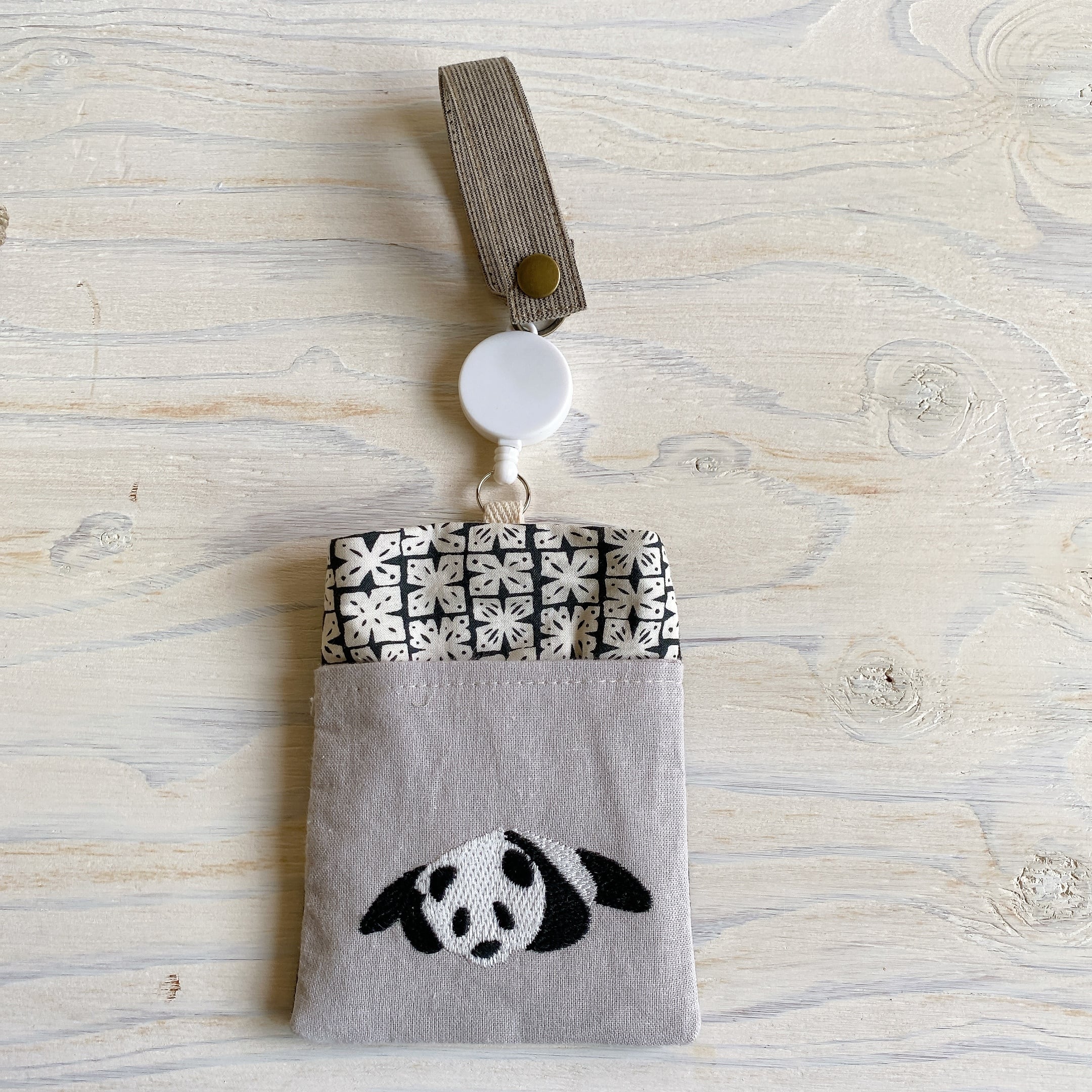 キュートな柄のデザインが目を引くリール付きパスケースです。