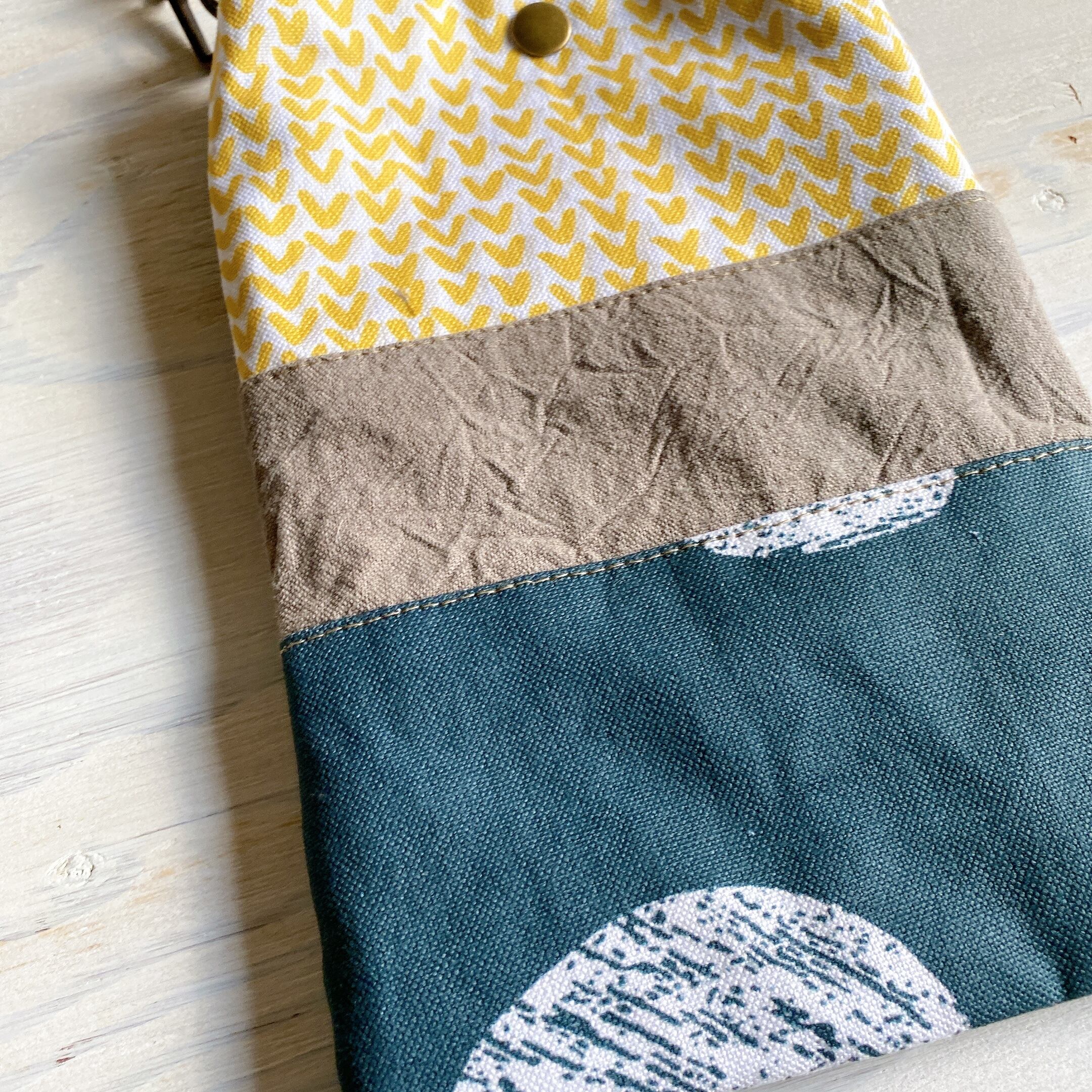 入り口のスナップボタンがスマホがうっかりポーチからこぼれるのを防いでくれます。