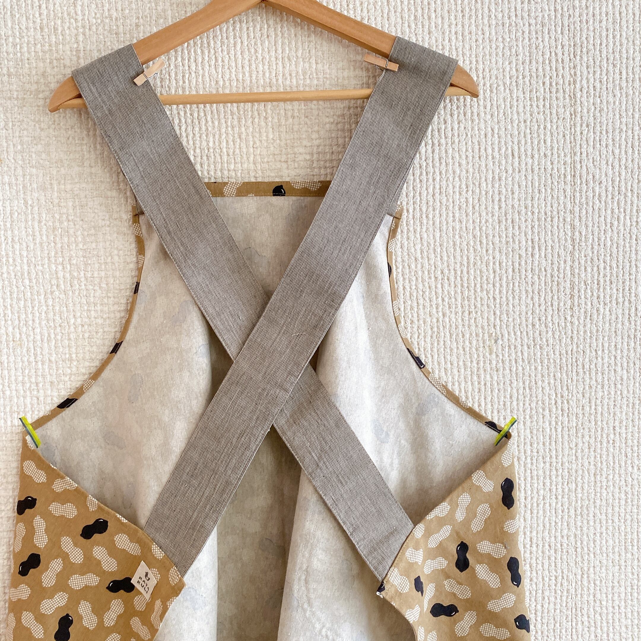 エプロン本体の生地は、綿麻キャンバス生地です。