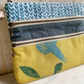 ファスナー開きのお部屋が3つあるフラットポーチです。