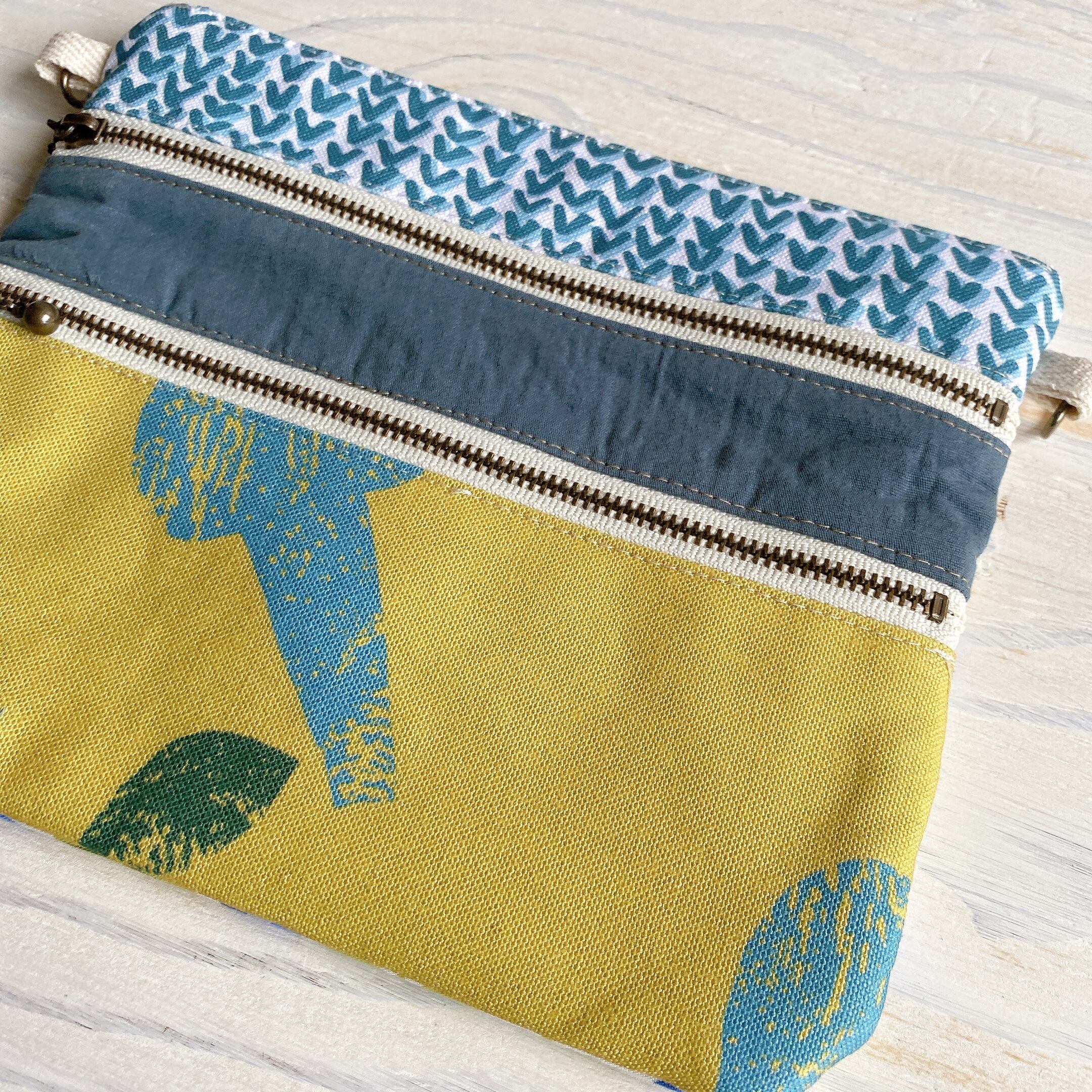 3ファスナーフラットポーチ・サコッシュにもなります(マスタード)