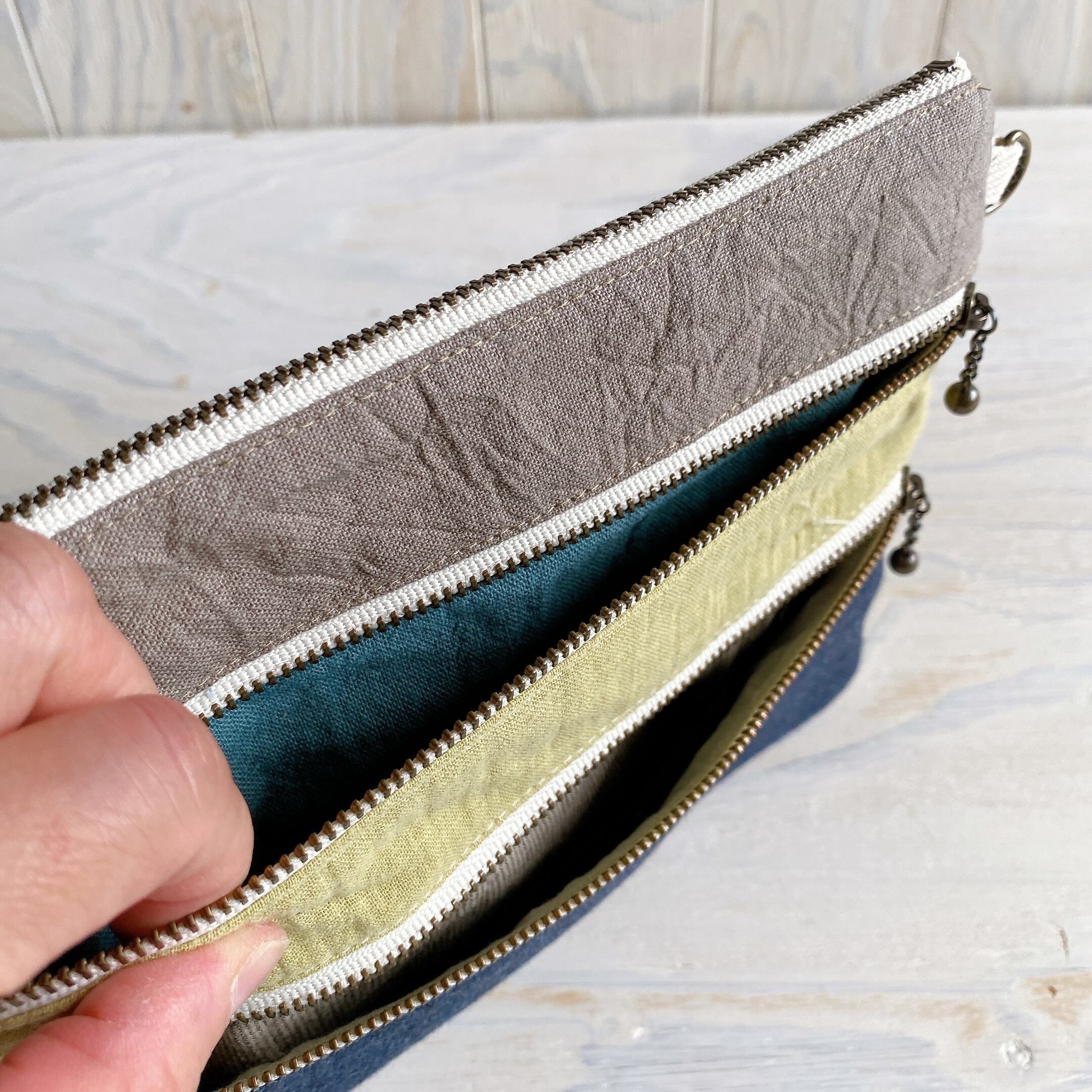 3ファスナーフラットポーチ・サコッシュにもなります(刺繍ネイビー)