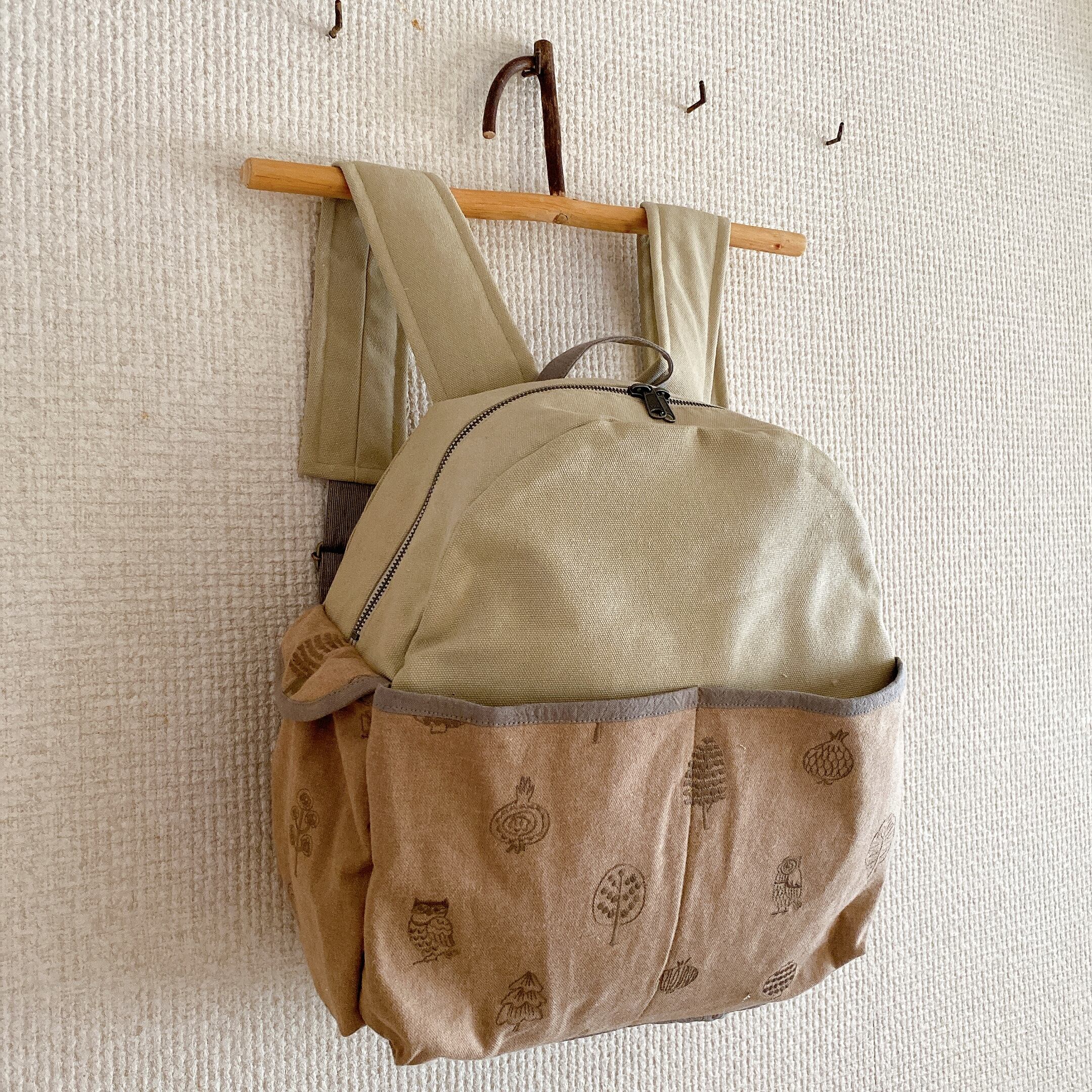 【オーダーのお品】たっぷり収納!大人のリュック(ベージュ刺繍)