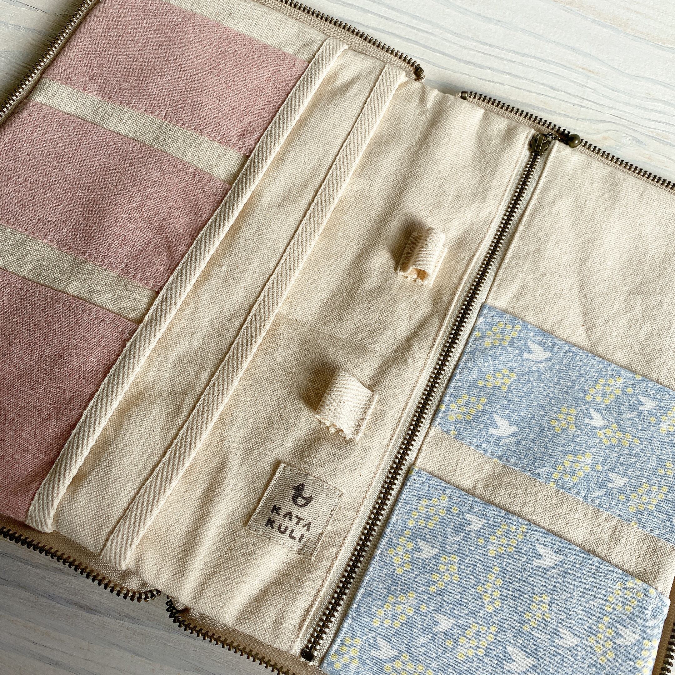 ケースがパカっと全開になるように、ファスナー止まりの部分に工夫をしています。