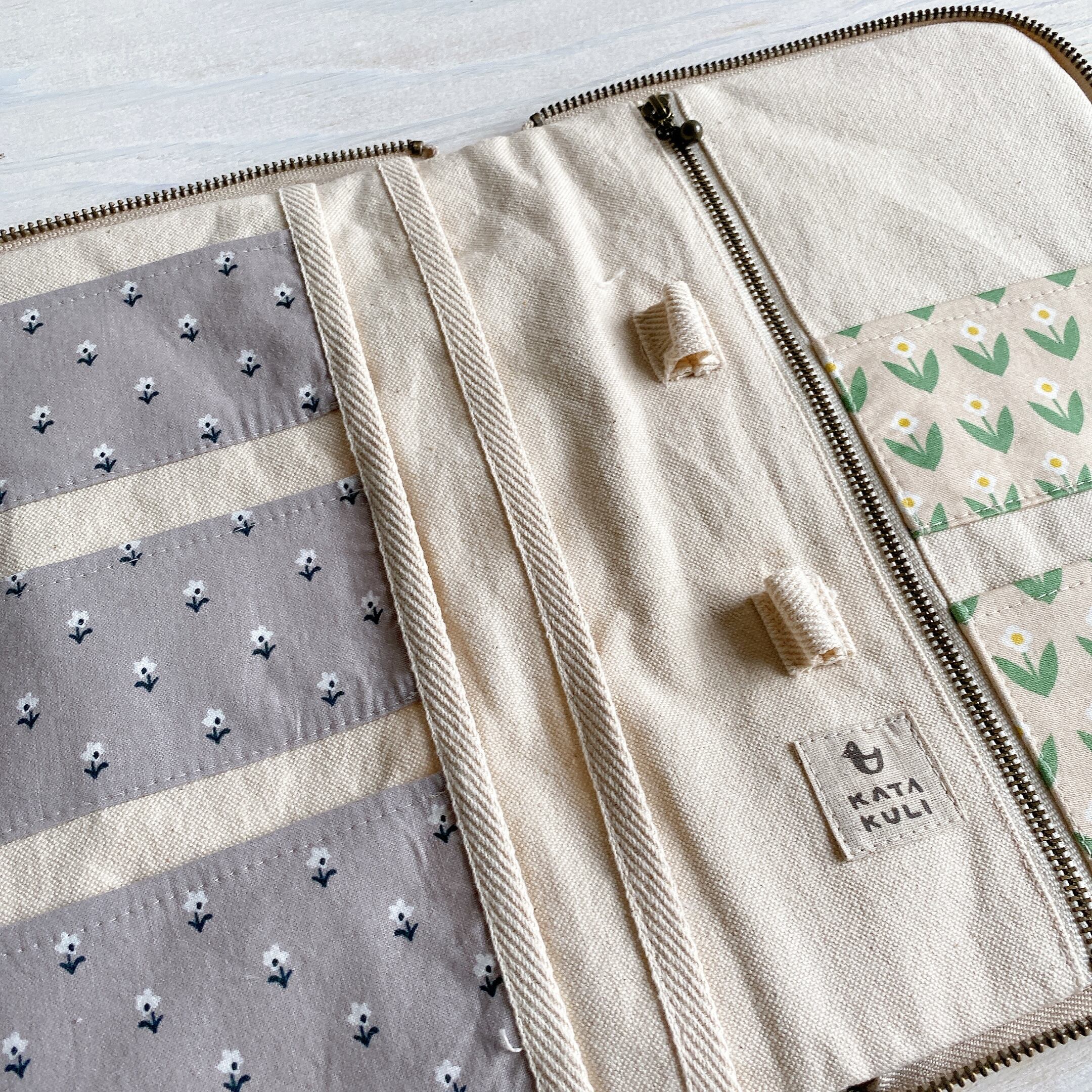 ケースがパカっと全開になるように、ファスナー止まりの部分に工夫をしています。