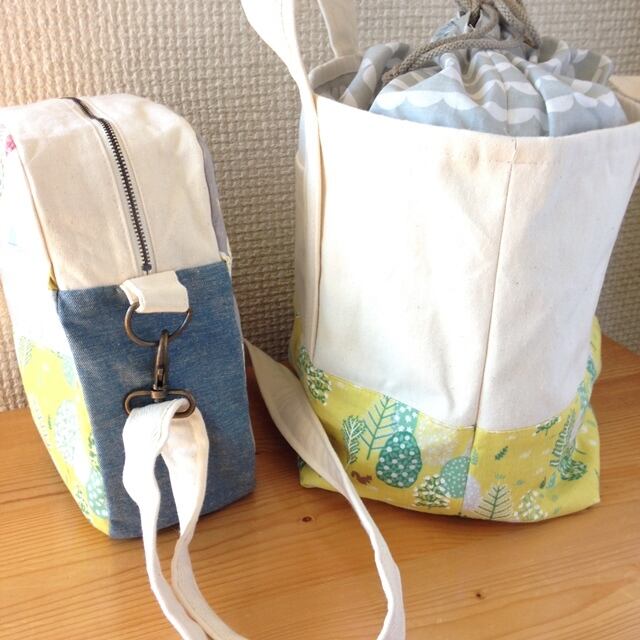 両面さまざまな相性の良い生地を組み合わせて斜め掛けできるショルダーバックを作りました。