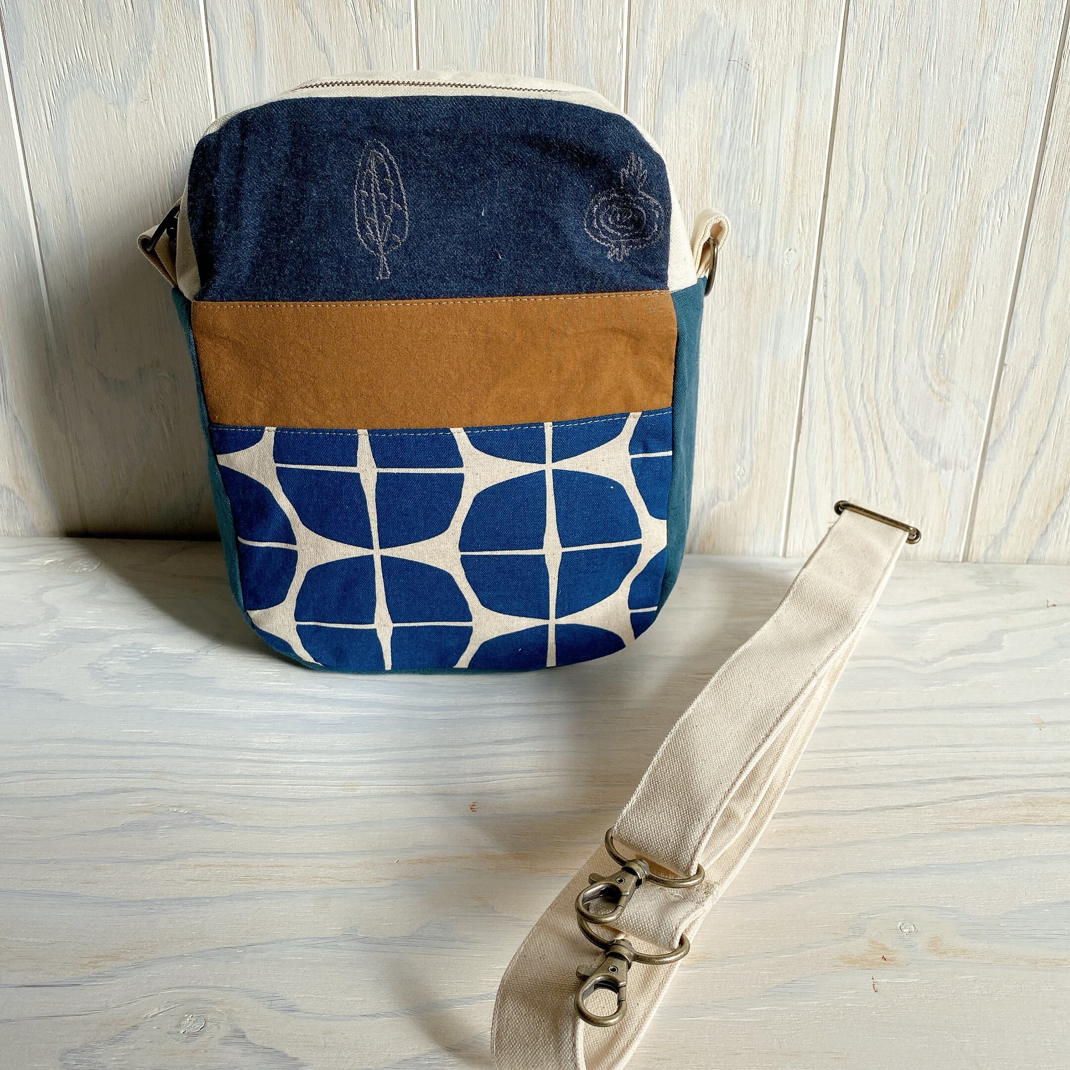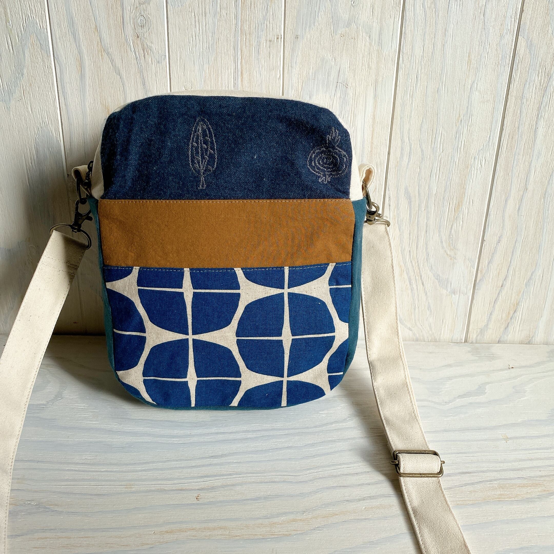 両面さまざまな相性の良い生地を組み合わせて斜め掛けできるおとなのポシェットを作りました。