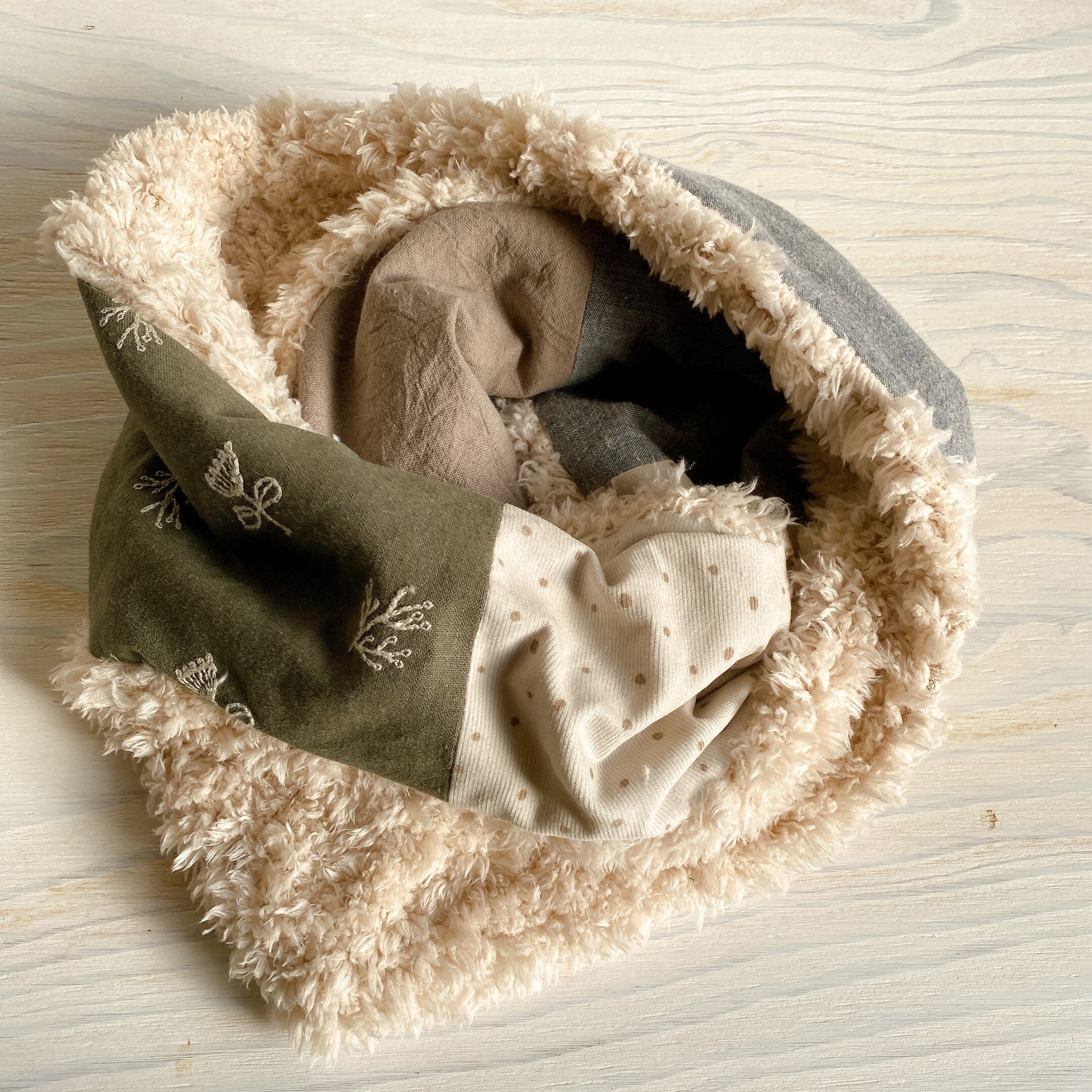 4種類の生地と、モコモコボアの生地の組み合わせをお楽しみください(*^^*)
