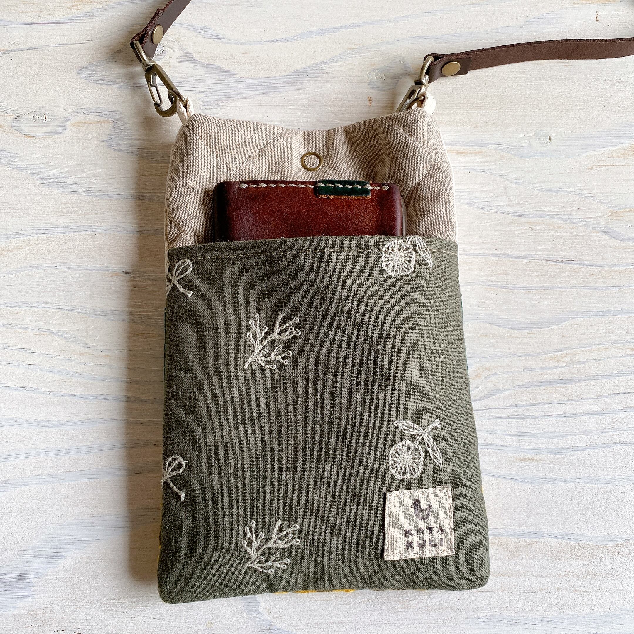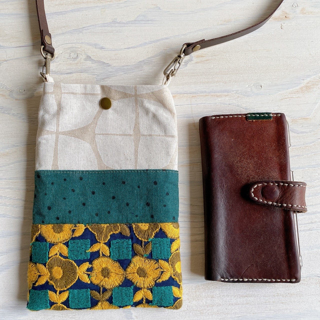 入り口のスナップボタンがスマホがうっかりポーチからこぼれるのを防いでくれます。