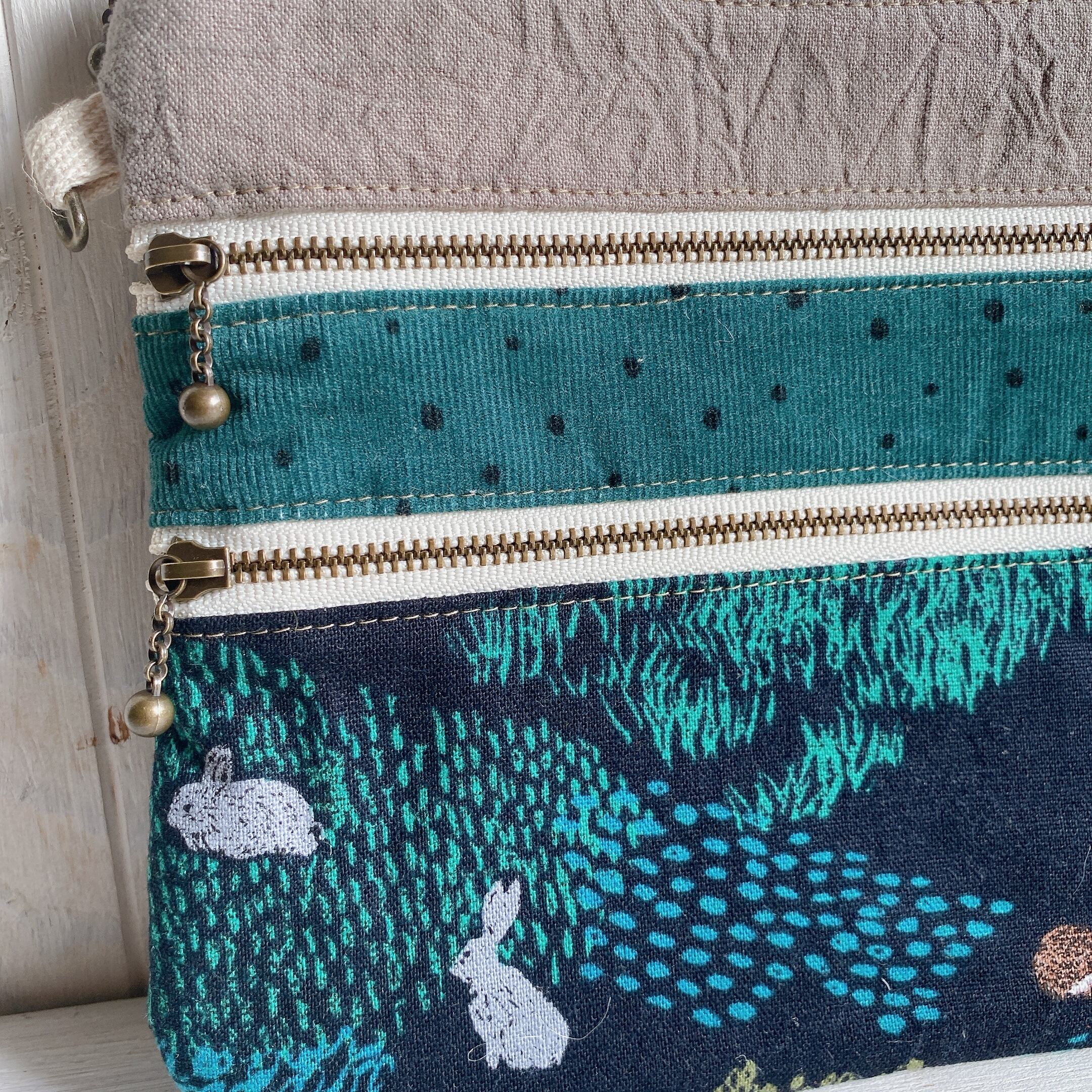 3ファスナーフラットポーチ・サコッシュにもなります(うさぎ×しらかば)