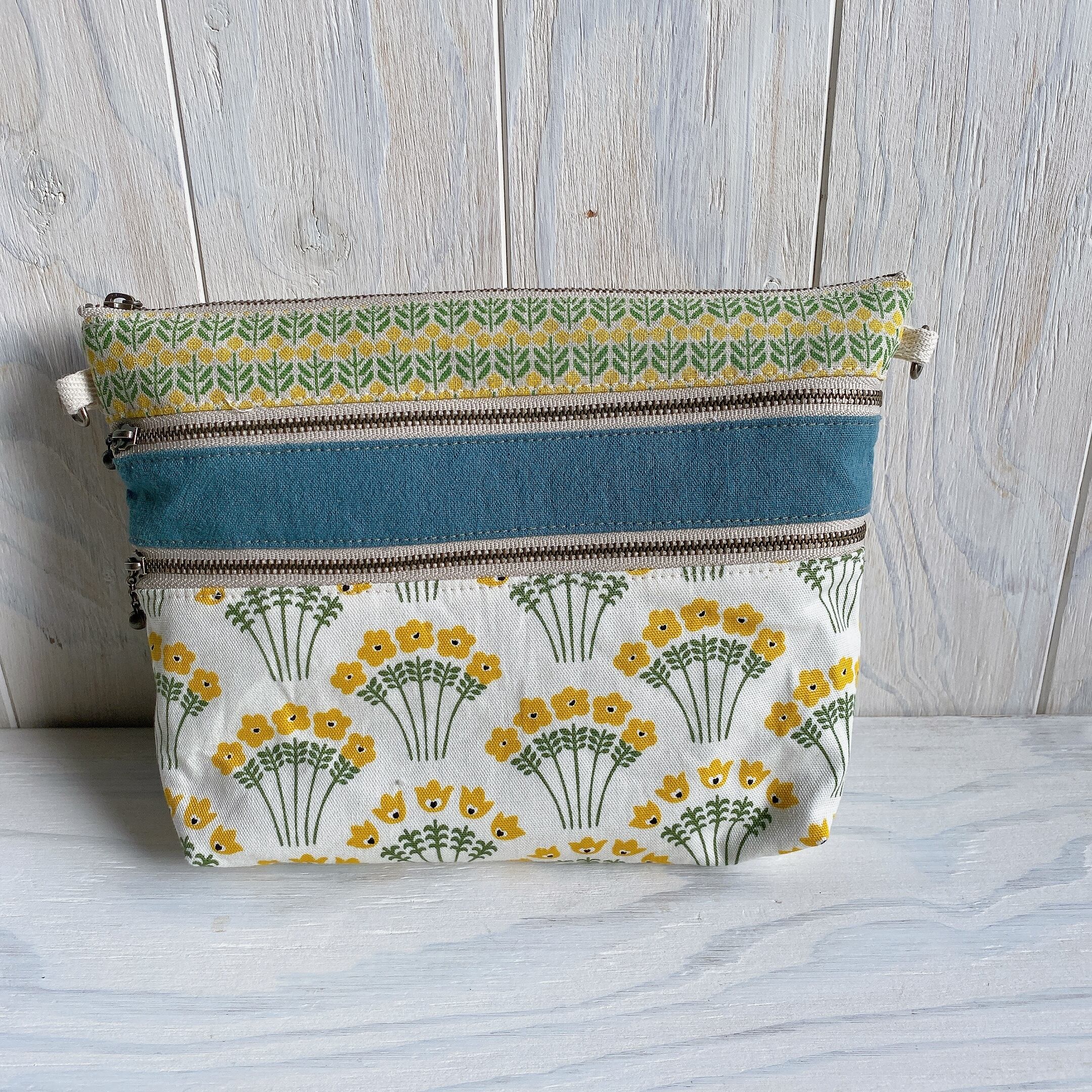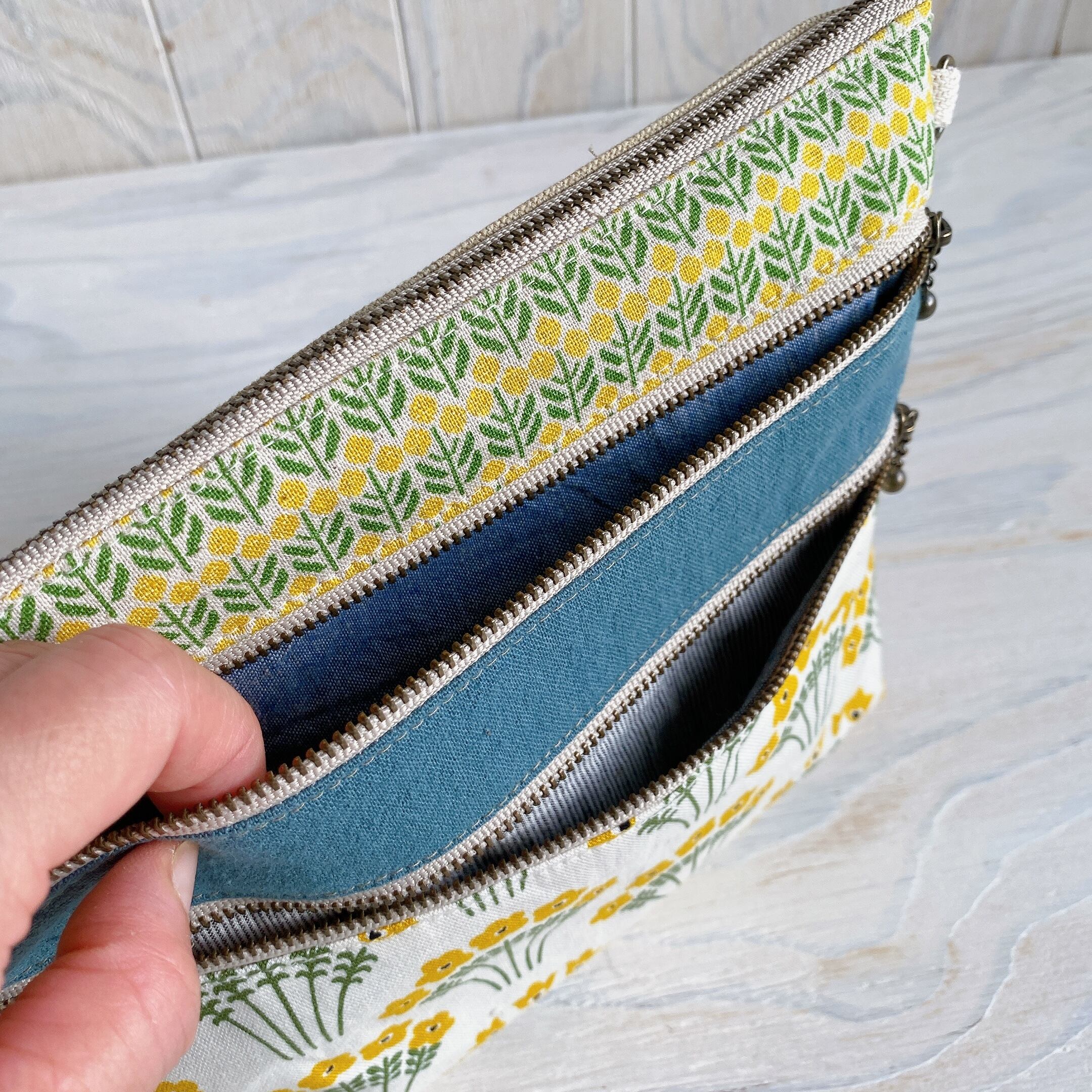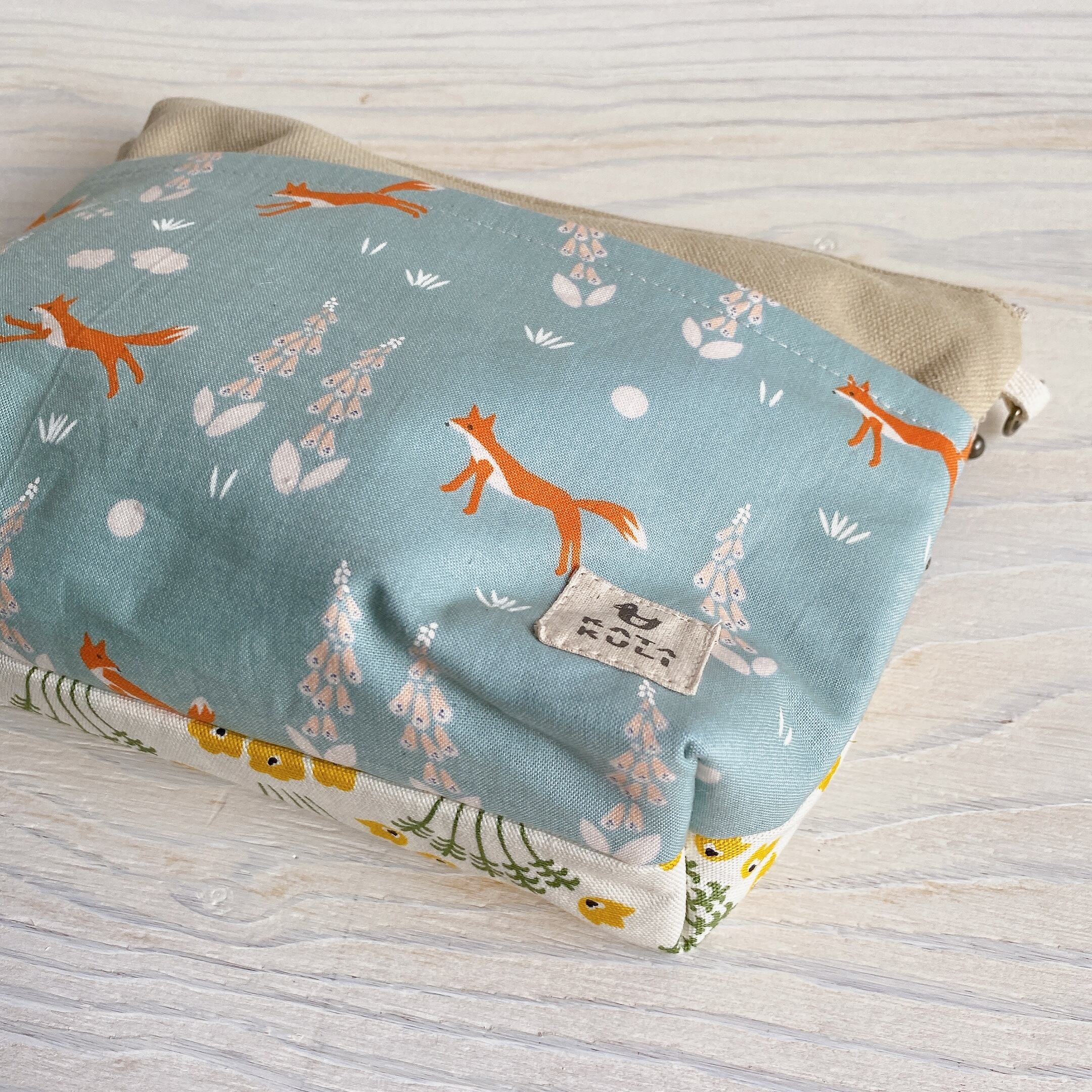 マチ付き3ファスナーポーチ・ポシェットにもなります(ミモザ×きつね)
