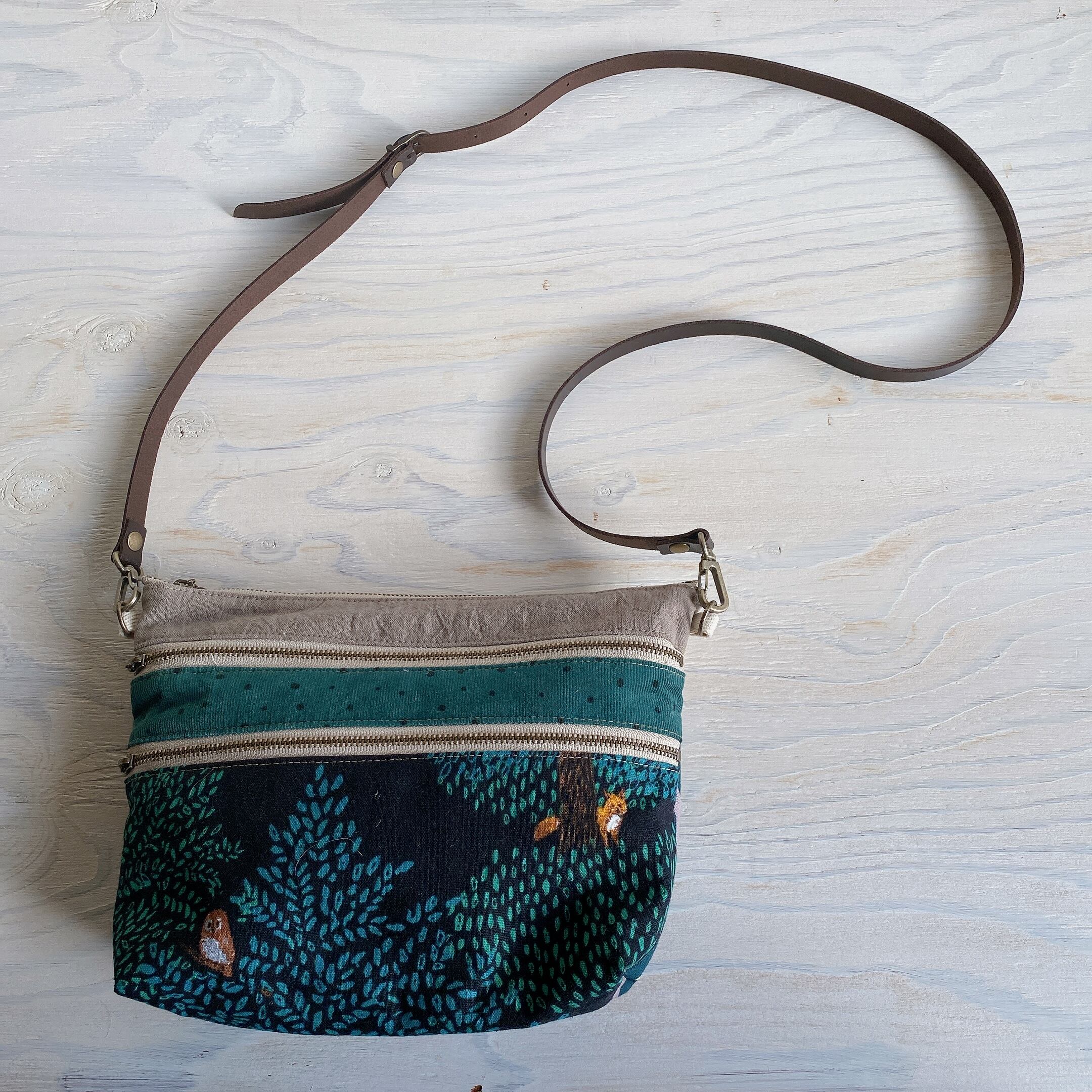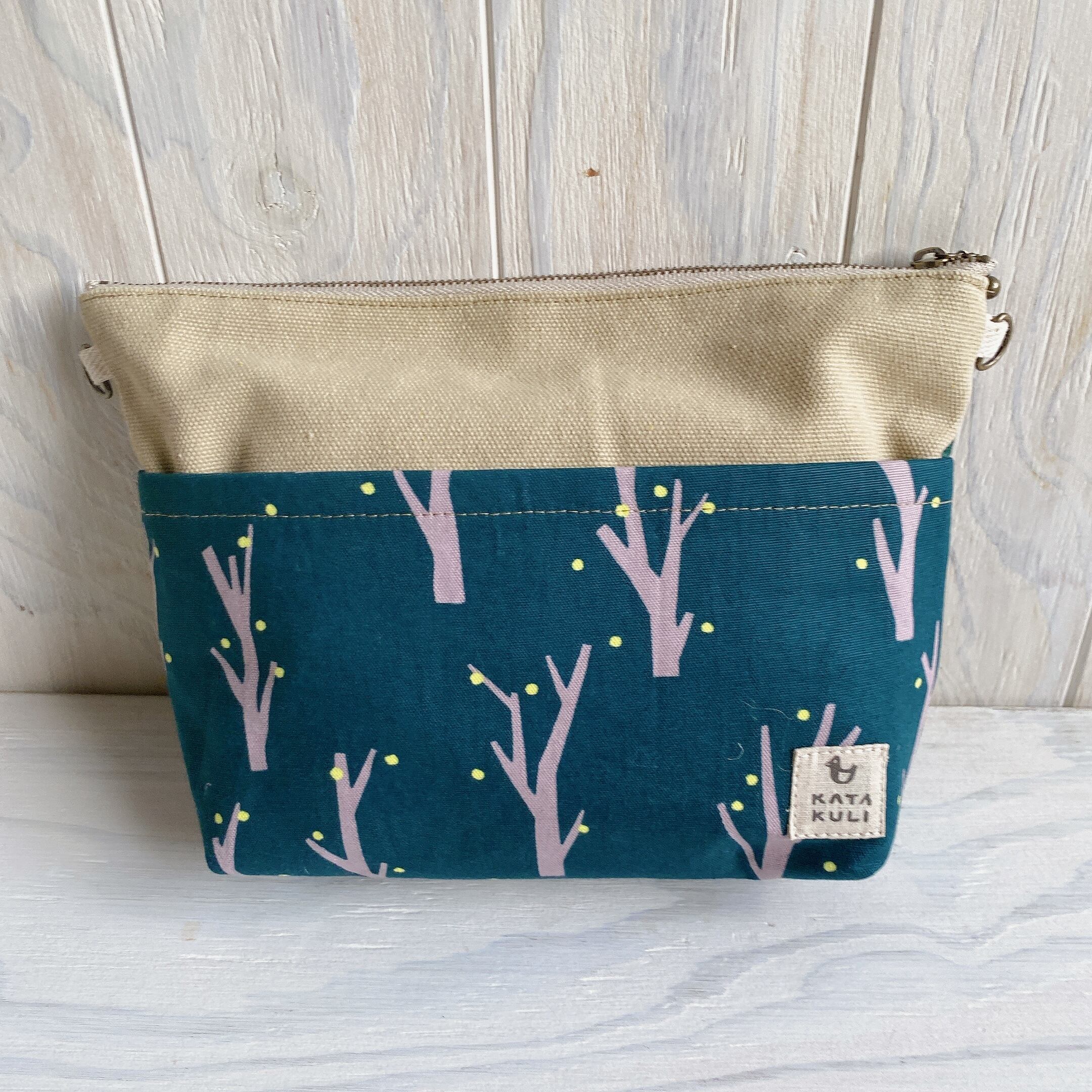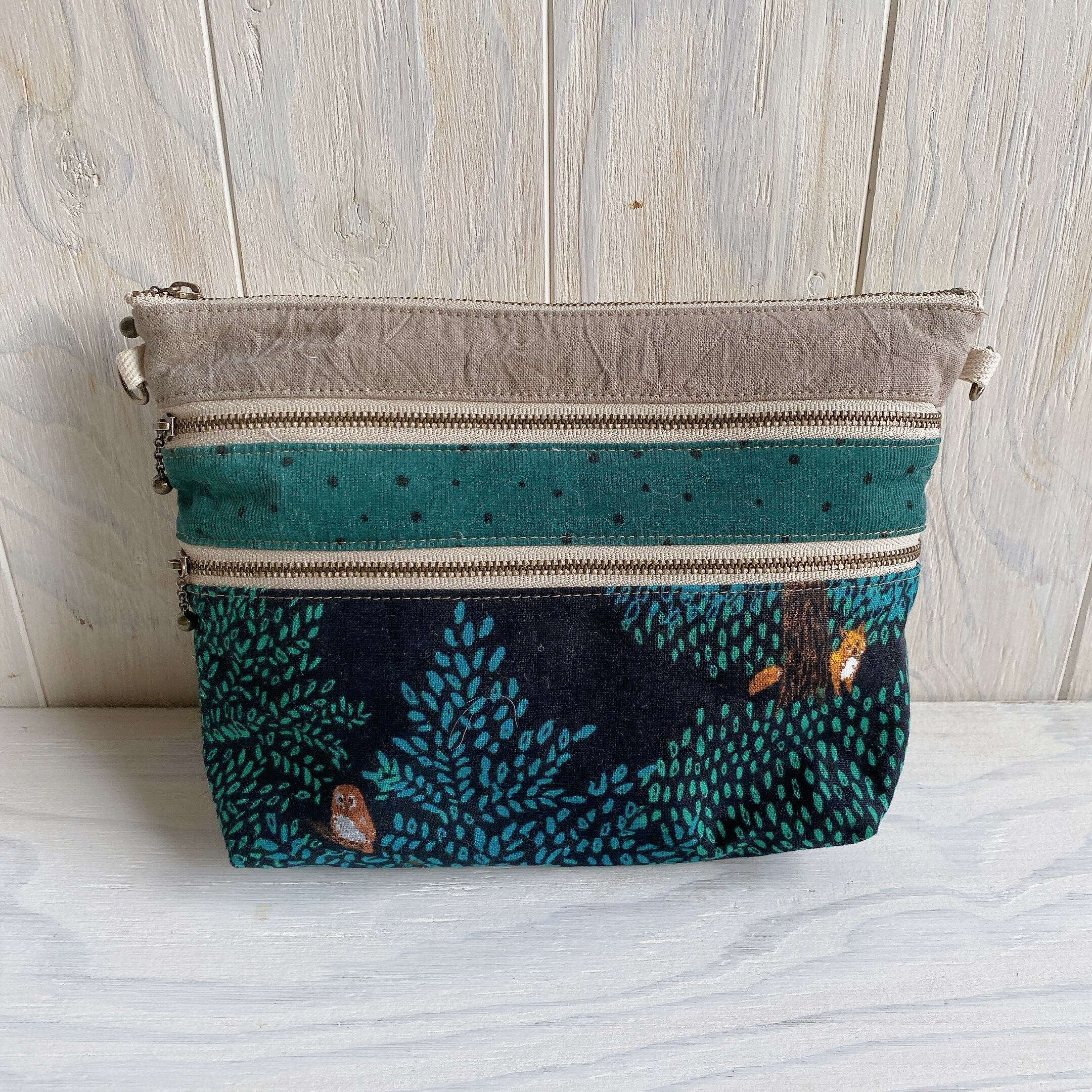マチ付き3ファスナーポーチ・ポシェットにもなります(キツネ×しらかば)