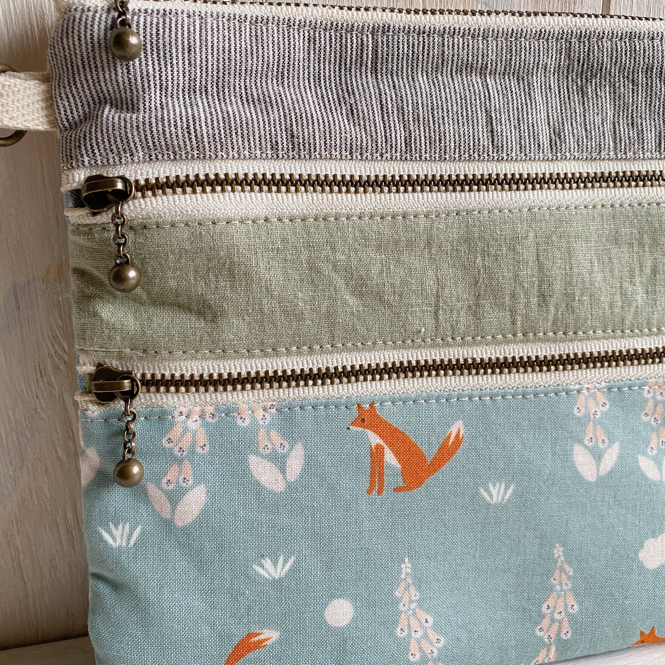 3ファスナーフラットポーチ・サコッシュにもなります(きつね×いろいろ)