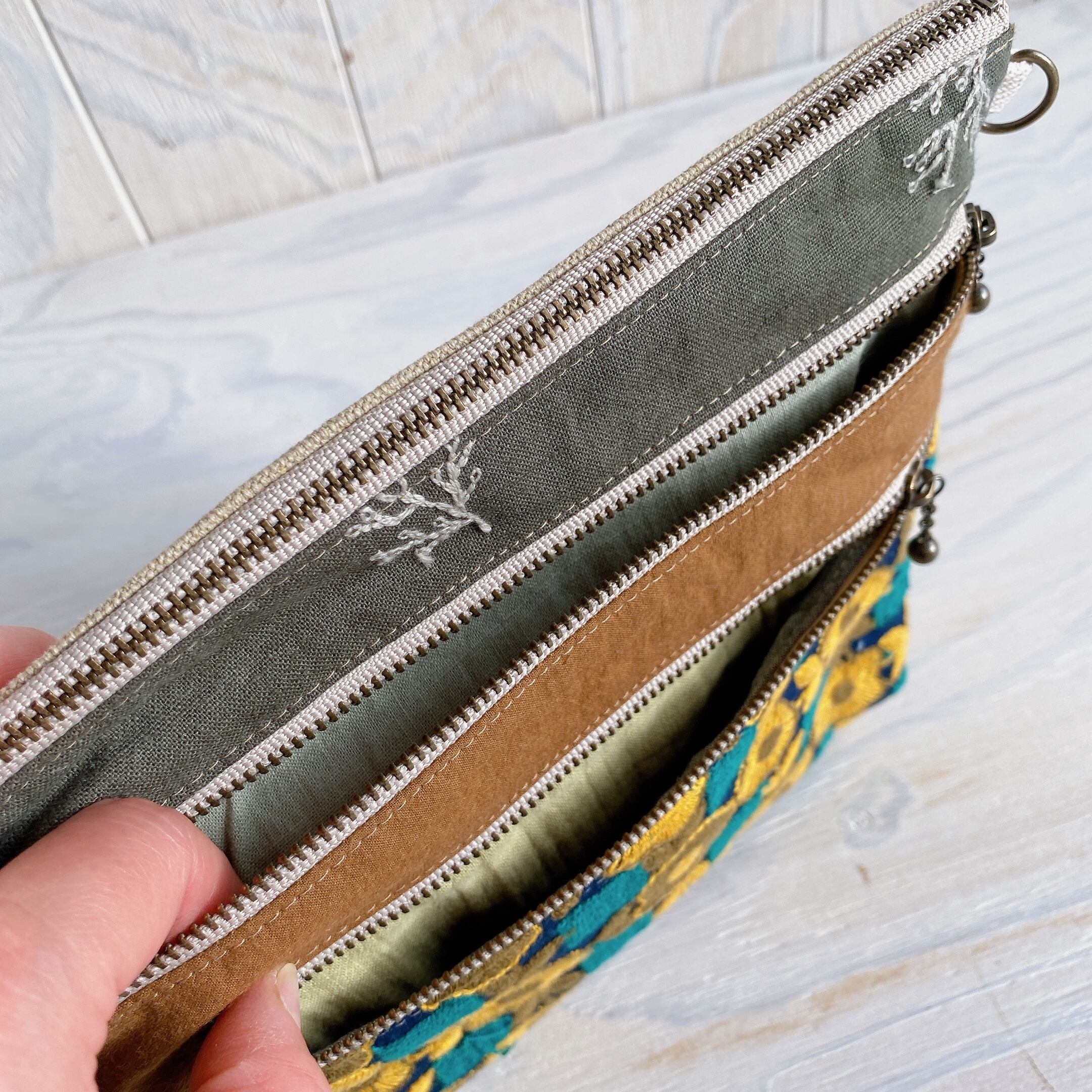 相性の良い生地を組み合わせてポシェットにもなるポーチを作りました。