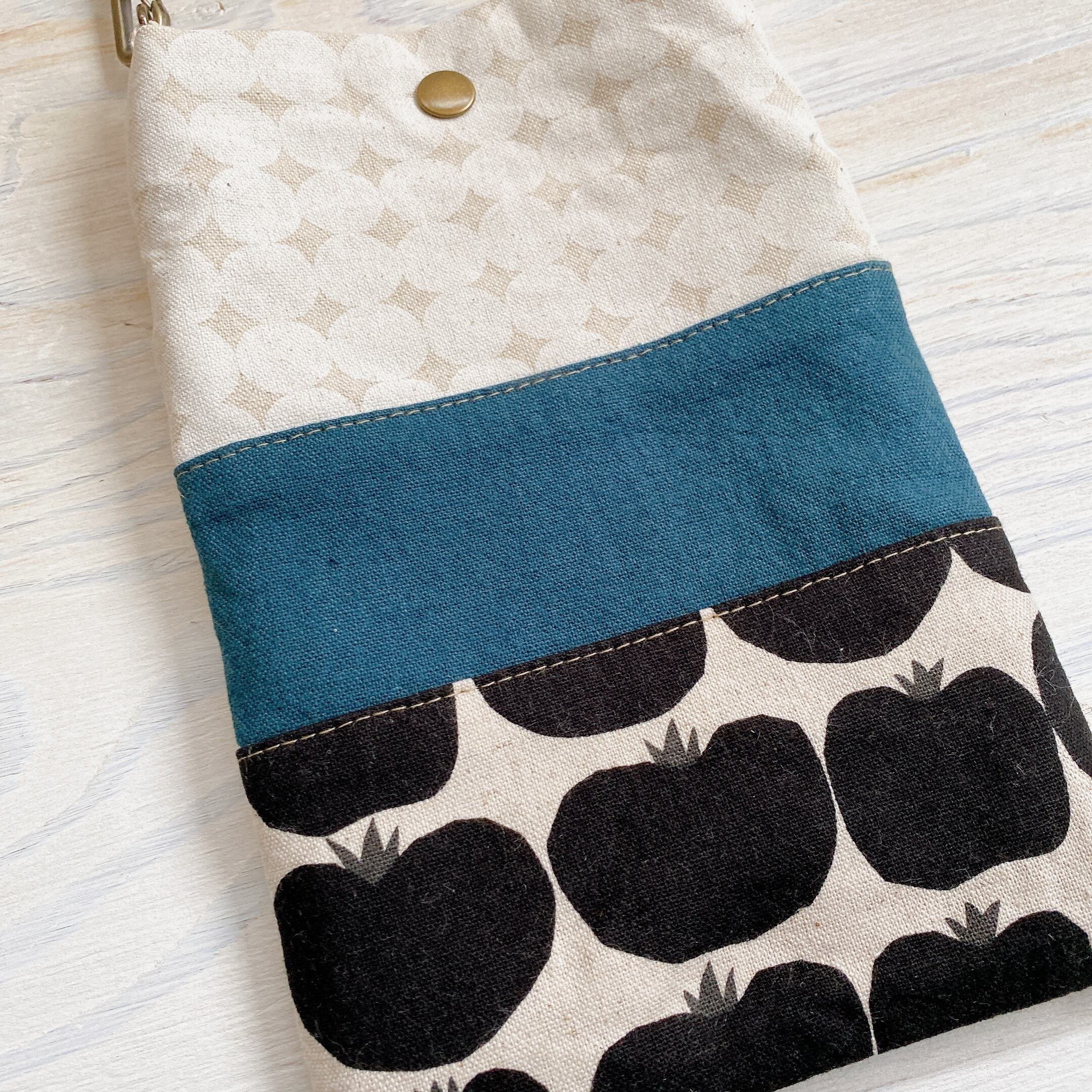 入り口のスナップボタンがスマホがうっかりポーチからこぼれるのを防いでくれます。