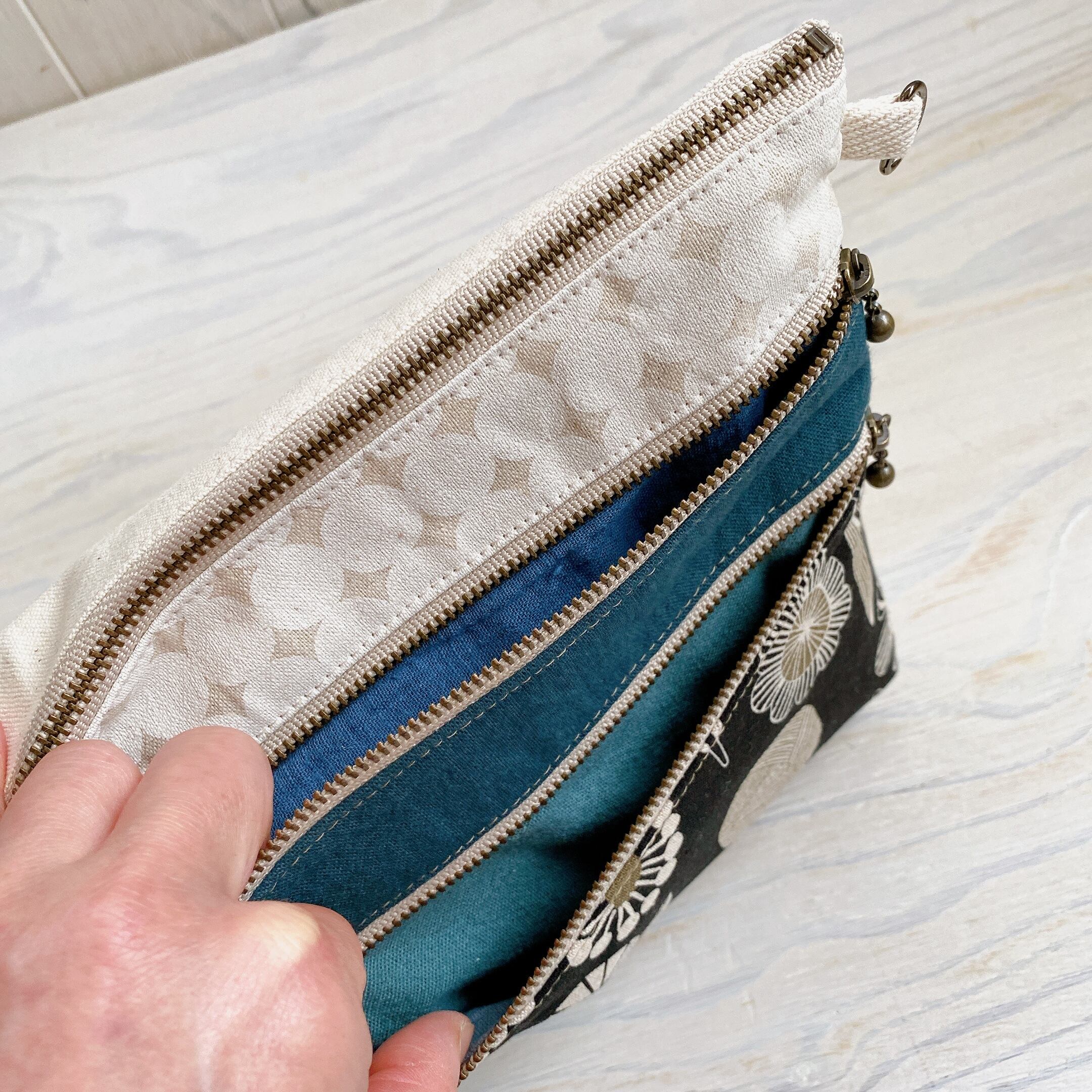マチ付き3ファスナーポーチ・ポシェットにもなります(クロおはな)