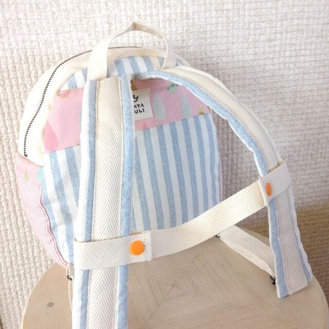 赤ちゃんファスナーリュック☆チェストストラップつき(しずく×ストライプ)