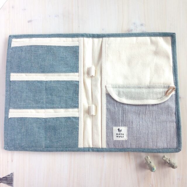 両サイドにもポケットがついていてA5サイズのノートが収まります。。