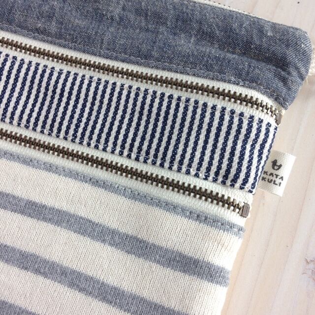 ポシェットにもなります*3ファスナーポーチ(ボーダー)