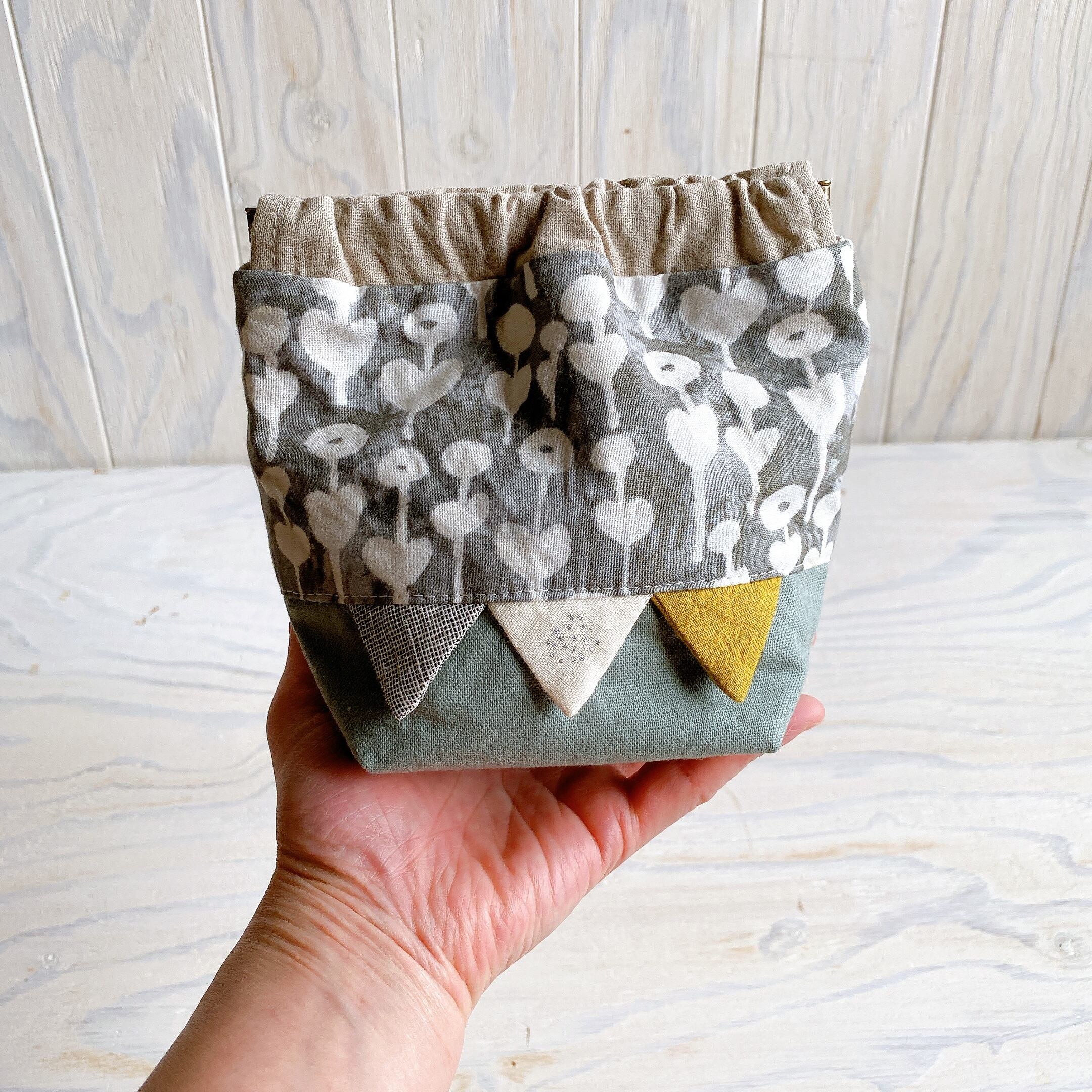 マチがたっぷりなばねポーチできました。
