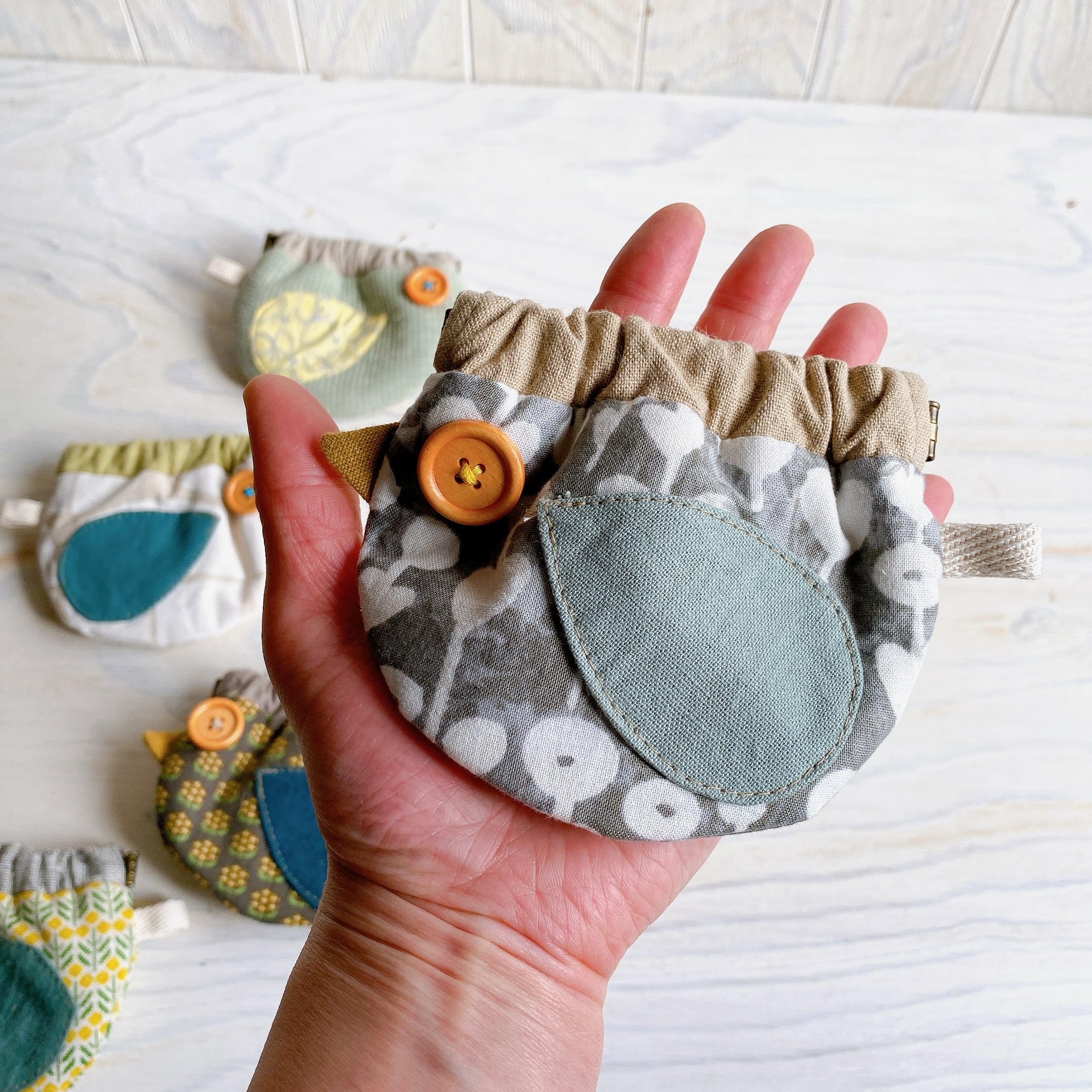 ことりのばねポーチ(しろはな)